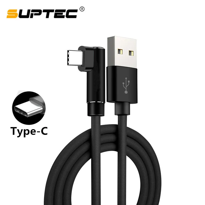 USB-кабель SUPTEC Type-C для быстрой зарядки, 90 градусов, L-образный кабель для передачи данных, зарядное устройство для Samsung S8, S9 Plus, Xiaomi mi5, mi6, Huawei P10, P9