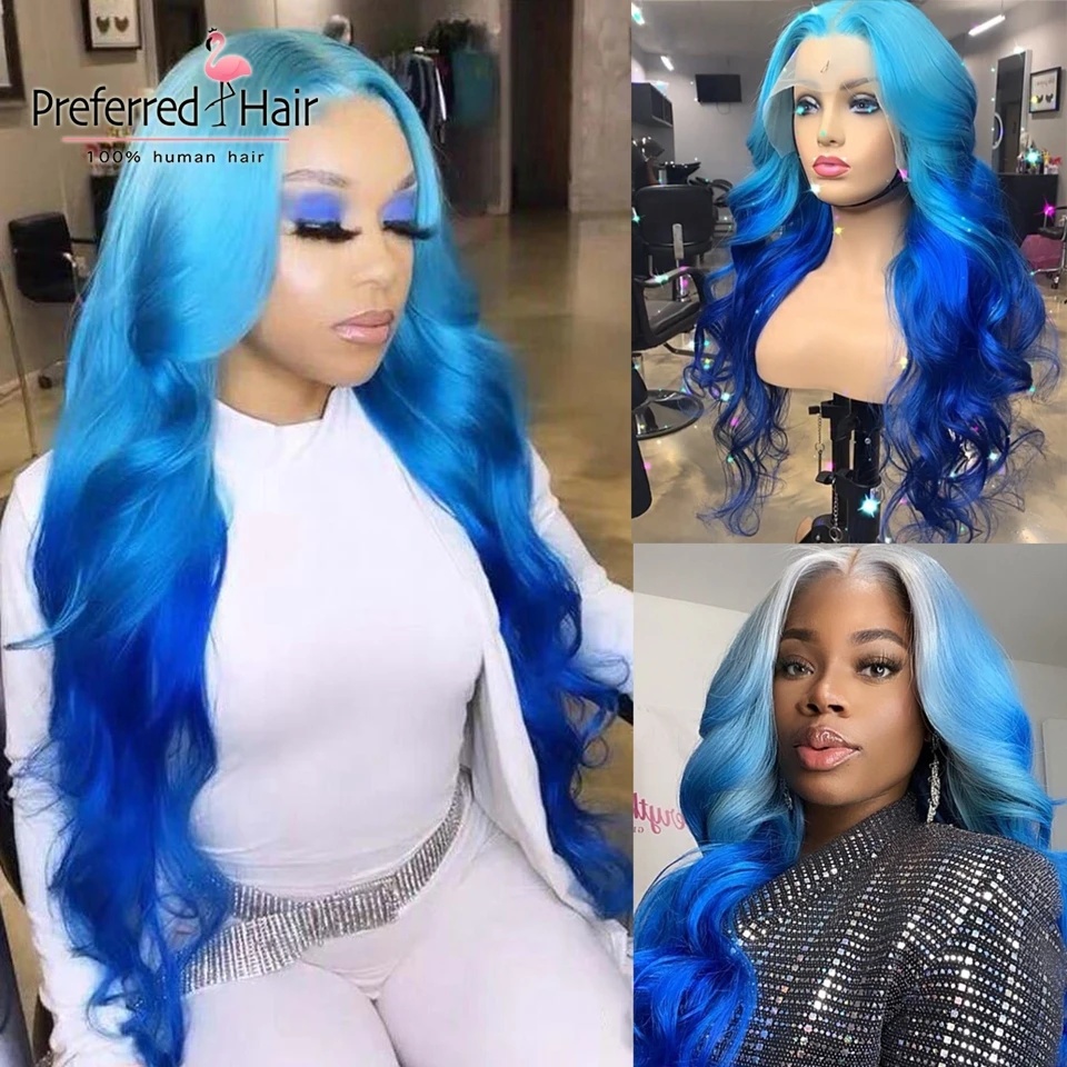 Предпочтительный прозрачный парик на сетке, бразильские волосы Remy, Платиновый, светлый парик на сетке спереди, предварительно выщипанные, голубые, Омбре, человеческие волосы, парики для женщин