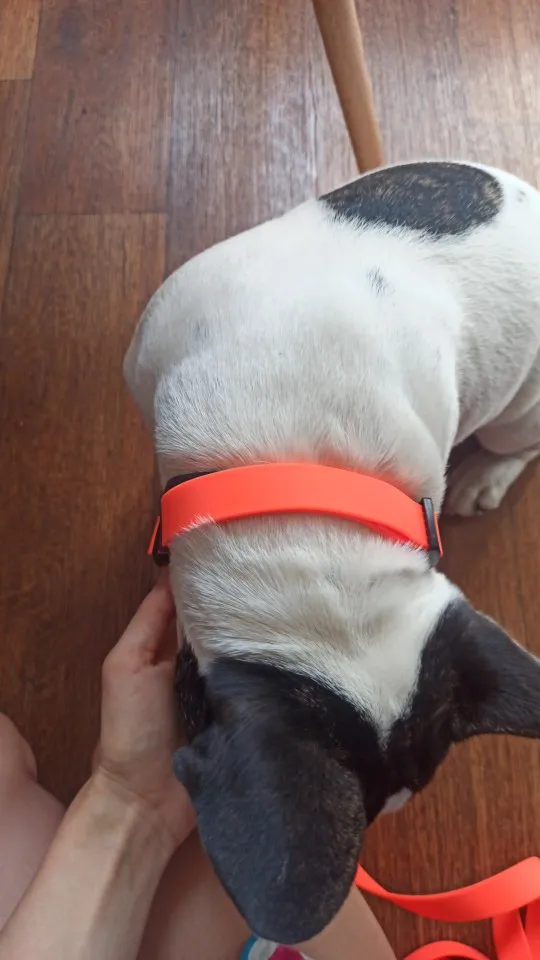 классный поводок и ошейник) качественно сделаны, очень яркий цвет) для бульдожки 5 месяцев взяла размер М, но размер ошейника регулируется, так что хватит надолго) рекомендую. возможно потом возьму другие цвета, уж больно красиво и стильно выглядит)