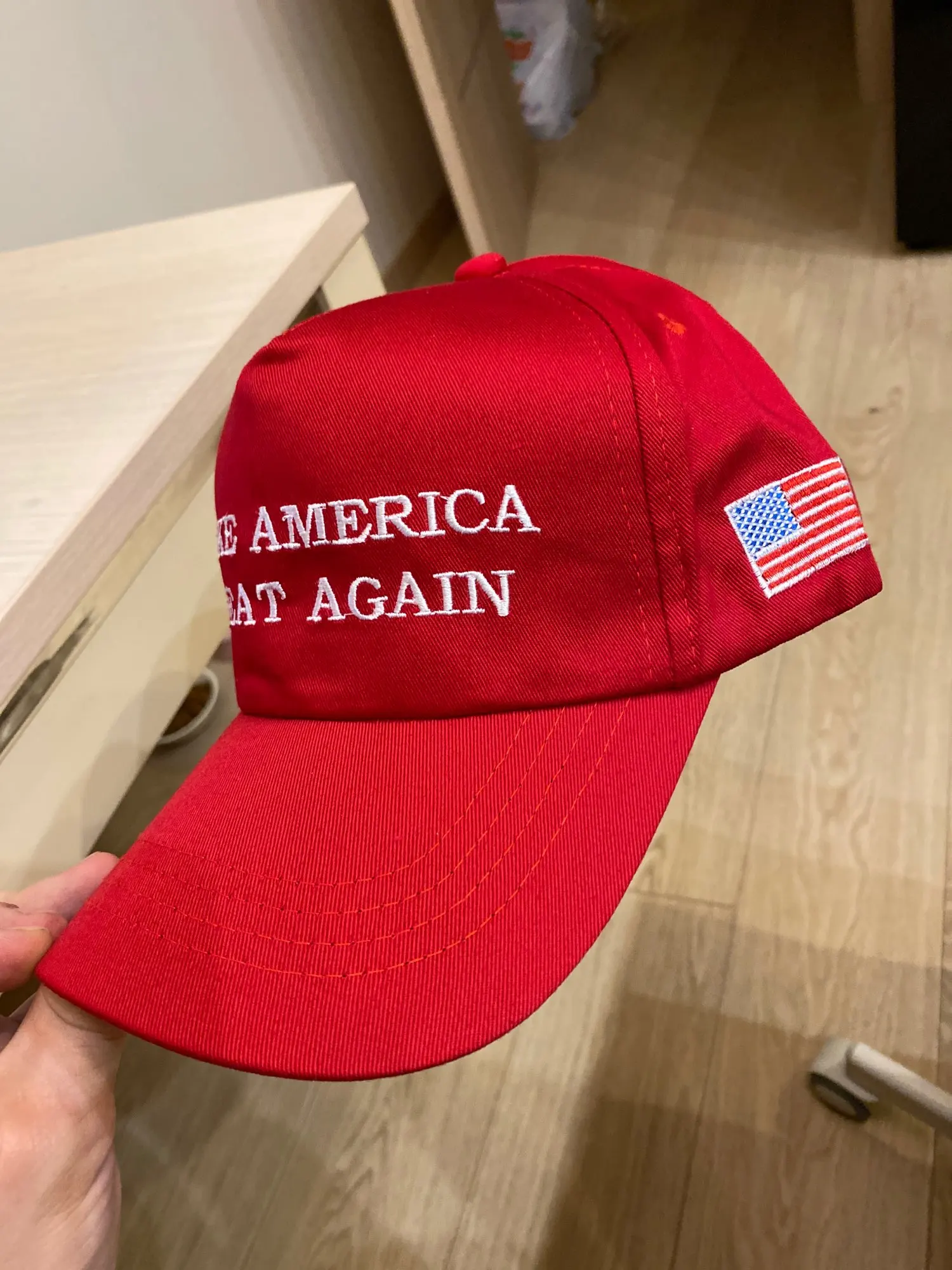 Кепка пришла очень быстро(недели две где-то, или даже меньше, не помню точно когда заказывал). Качество, конечно, не как у оригинала, но за свои деньги очень достойно. Покупкой удоволетворён, троллю свою маму поклонницу демократов, вот же умора)))