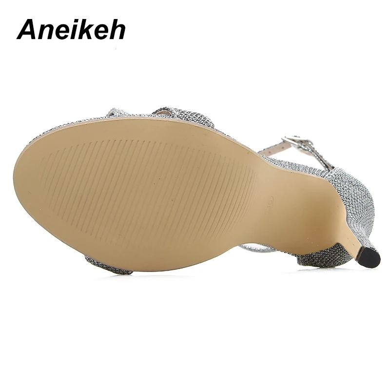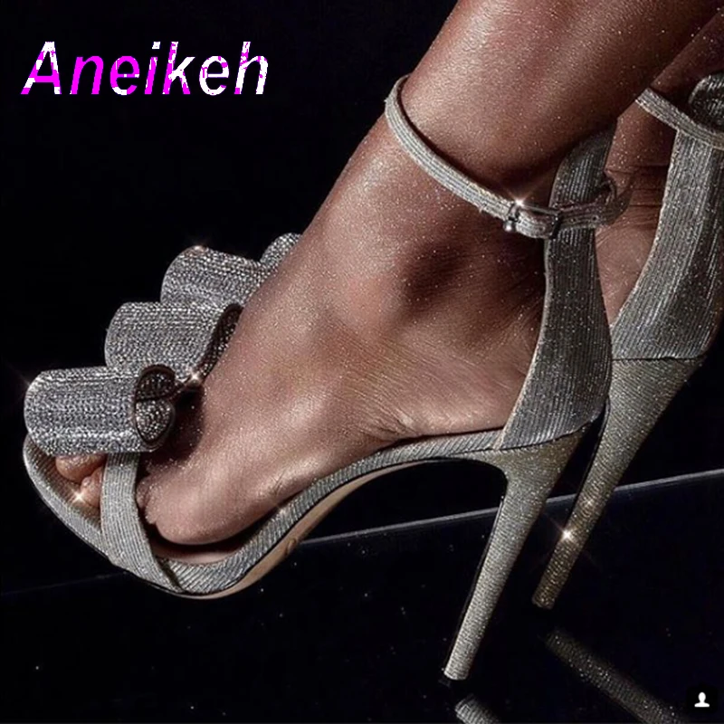 Aneikeh 2022 летние сандалии стразы серебристые женские модные сандалии на высоком каблуке с застежкой-бабочкой женские сандалии обувь для вечеринки