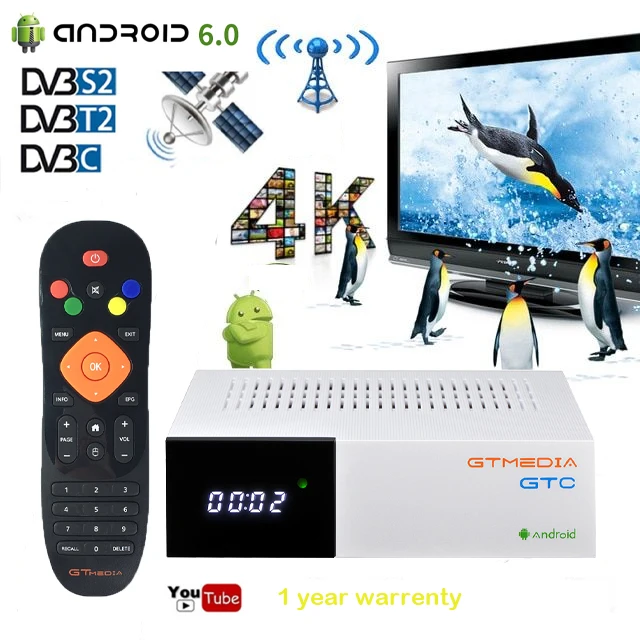 Gtmedia GTC Android ТВ коробка + наземного спутниковый ТВ приемник Combo тюнер DVB-S DVB-T DVB-C Amlogic S912 поддерживает 4k HD TV box