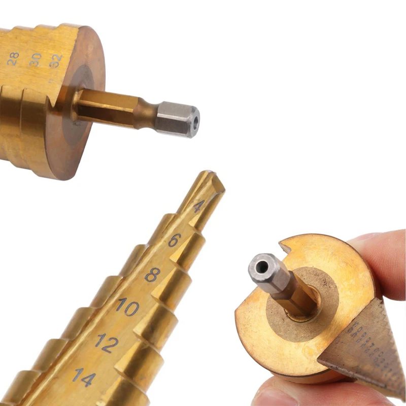 Ступенчатое сверло из быстрорежущей стали, дерева, 4-32 мм, 4-20 мм