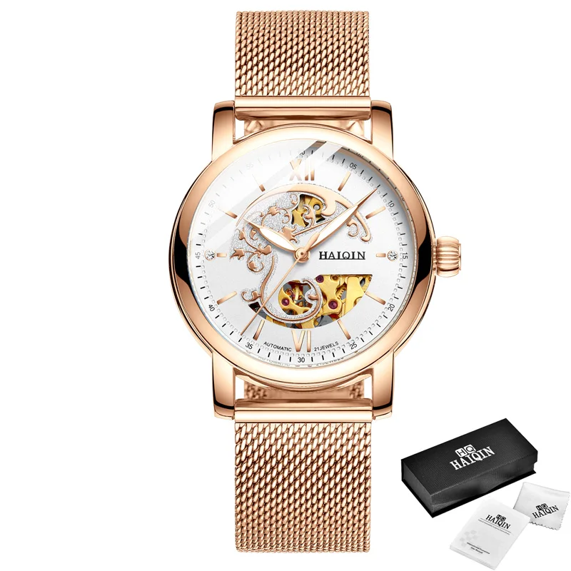 HAIQIN женские часы, женские часы, лучший бренд, роскошные спортивные наручные часы, женские механические часы, модные сетчатые relogio feminino