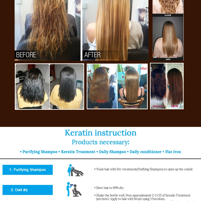Если у вас золотистые волосы, пожалуйста, не выбирайте кератин без формальдегида, или ваши волосы станут оранжевыми. Выберите кератин с 5% формалином или другой.