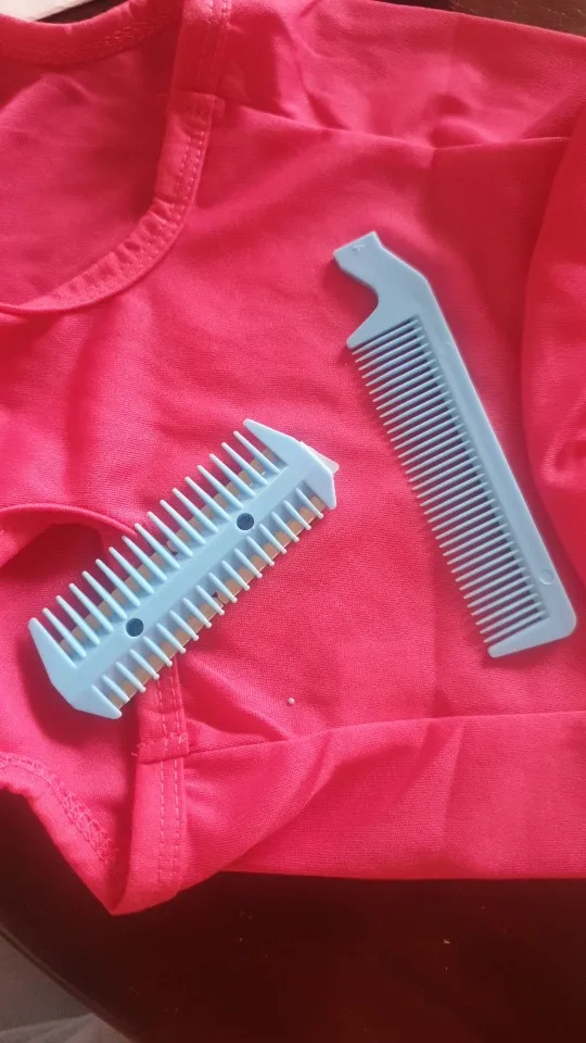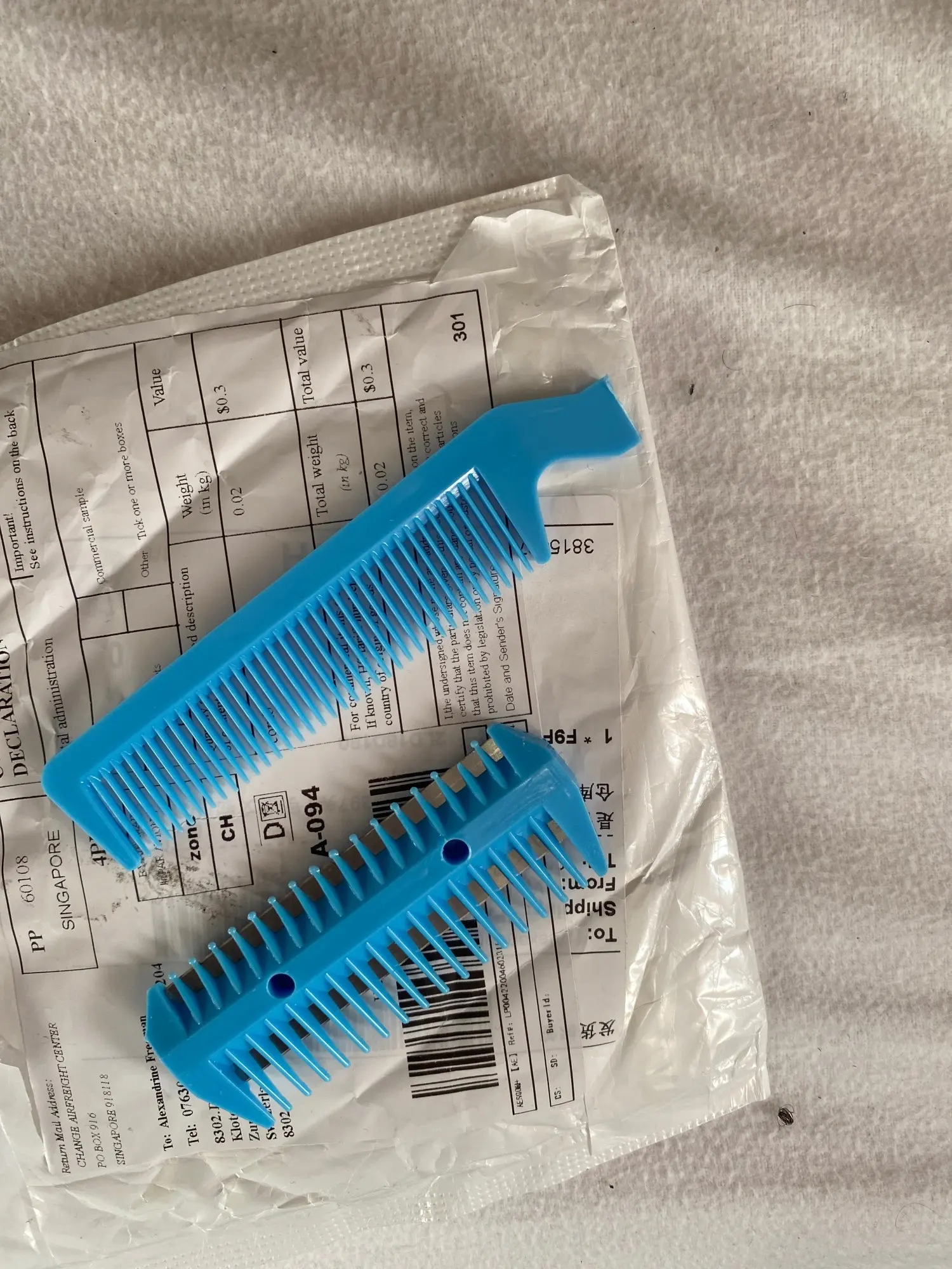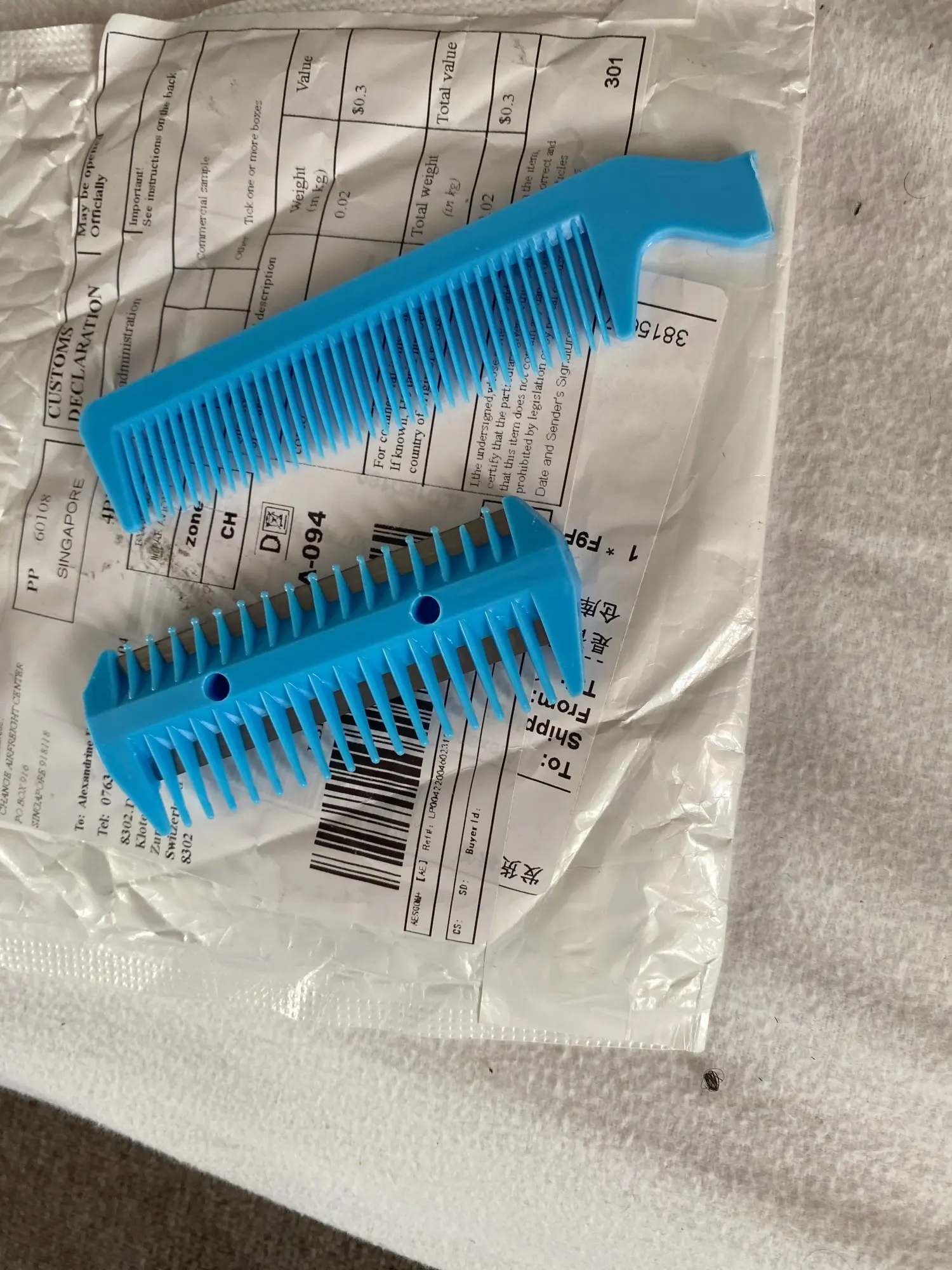 Товар в Украину шёл 1,5 месяца. Расчёска соответствует описанию. Лезвия тупые, ничего не режут. После замены попробую в работе и допишу отзыв.