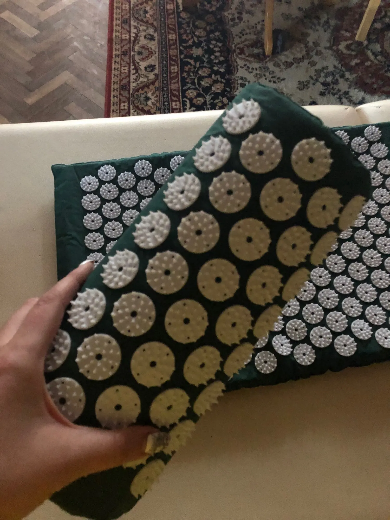 Очень хороший коврик и подушка. сделан аккуратно. Масажные шипы очень хорошие. На пять.Немного дольше шёл.
