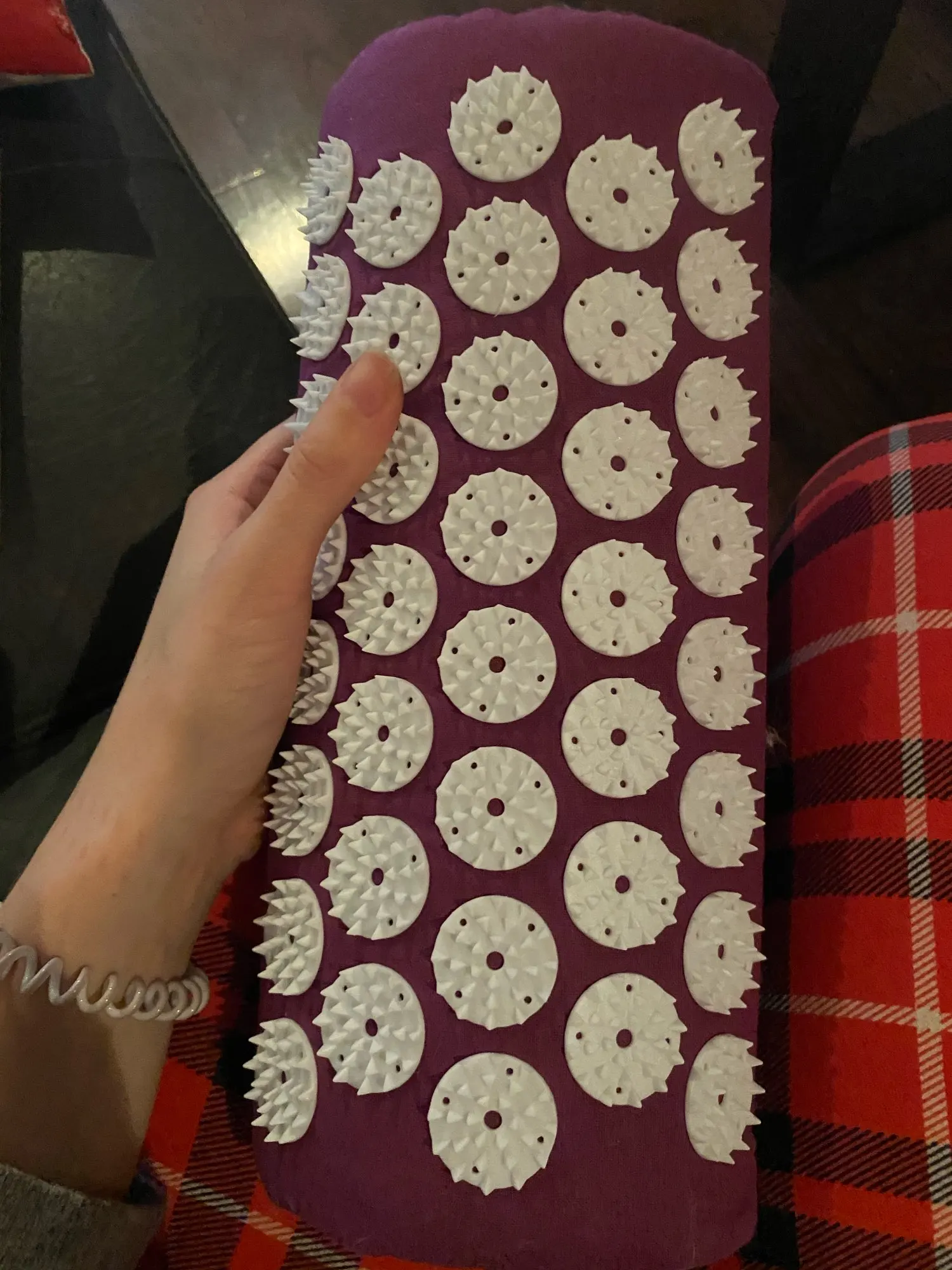 коврик довольно большой, у нас подобные колючки острее, не знаю хорошо это или плохо. Пока привыкаю к нему.
