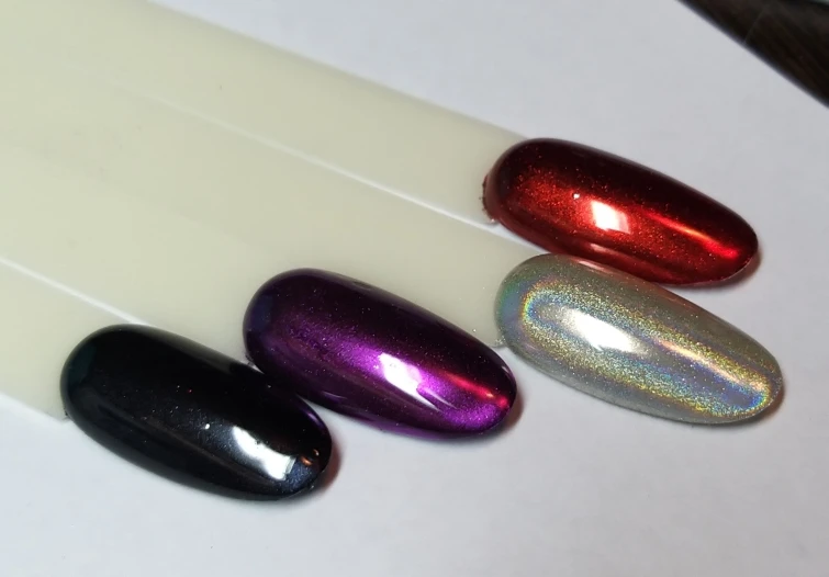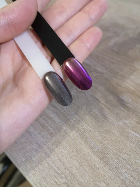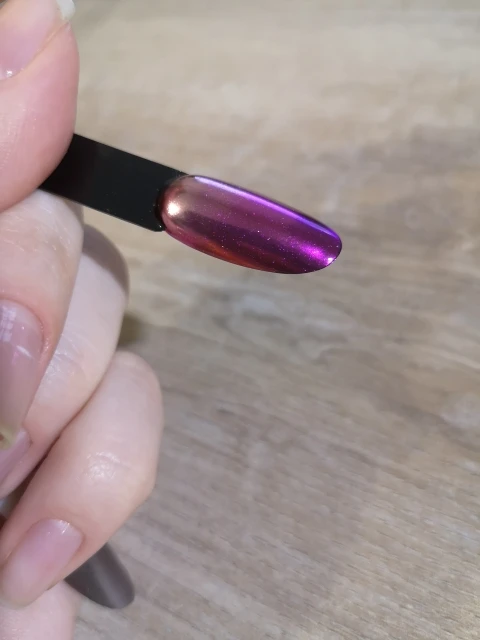 Очень красивая втирка, на топ без липкого слоя. Надо приноровиться, на разных топах может по-разному ложится. Зависеть может от времени сушки, где то 30 сек идеально, и минута уже много, и втирка не ложится уже вовсе, а скользит как по стеклу.