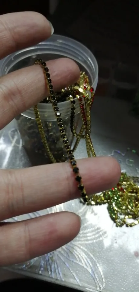 Цепочки с кристаллами использую для декорирования поделок. Качество хорошее. Буду заказывать разные цвета. Спасибо продавцу.