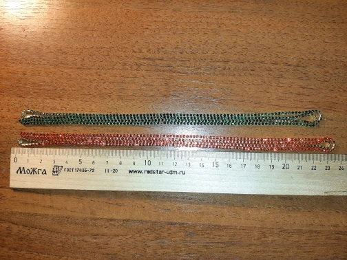 Отправка очень быстрая, доставка в Бельгию - чуть более 3 недель. Стразовые цепи отличного качества, длина каждой 94-95 см. Красная цепочка в красной оправе - супер! Продавца рекомендую!