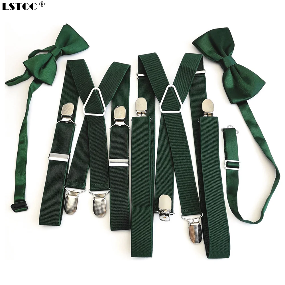 Черновато-зеленый мужской женский и мужской стиль аксессуары высокоэластичные ремешки прочные 4 клипсы подтяжки галстук комплект для взрослых и детей мальчиков