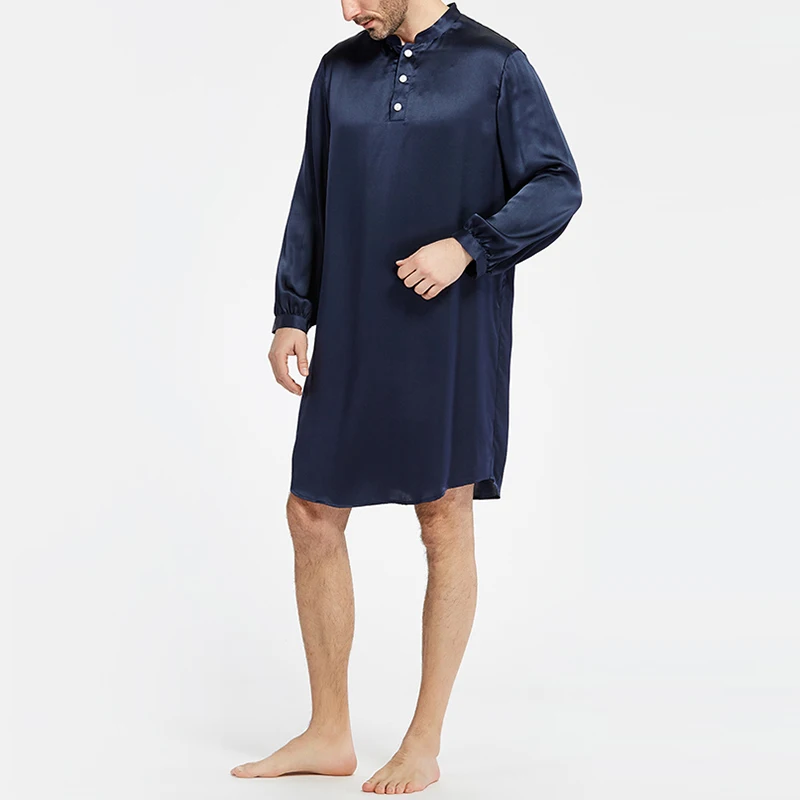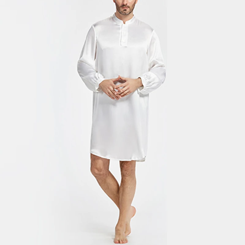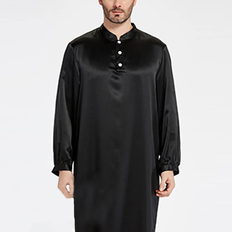 Мужская атласная ночная рубашка, шелковая сорочка с длинным рукавом, Арабская рубашка, одежда для отдыха