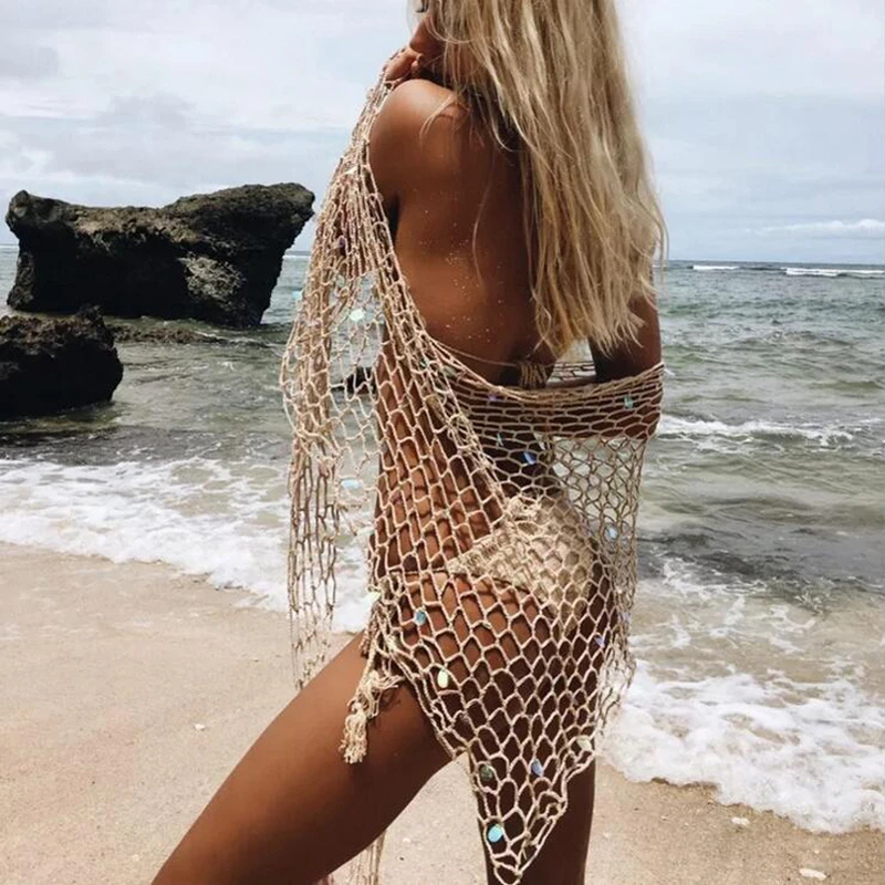 Новое поступление, летнее сексуальное женское ажурное Сетчатое вязаное крючком бикини, накидка для купальника, Пляжное Платье для купания