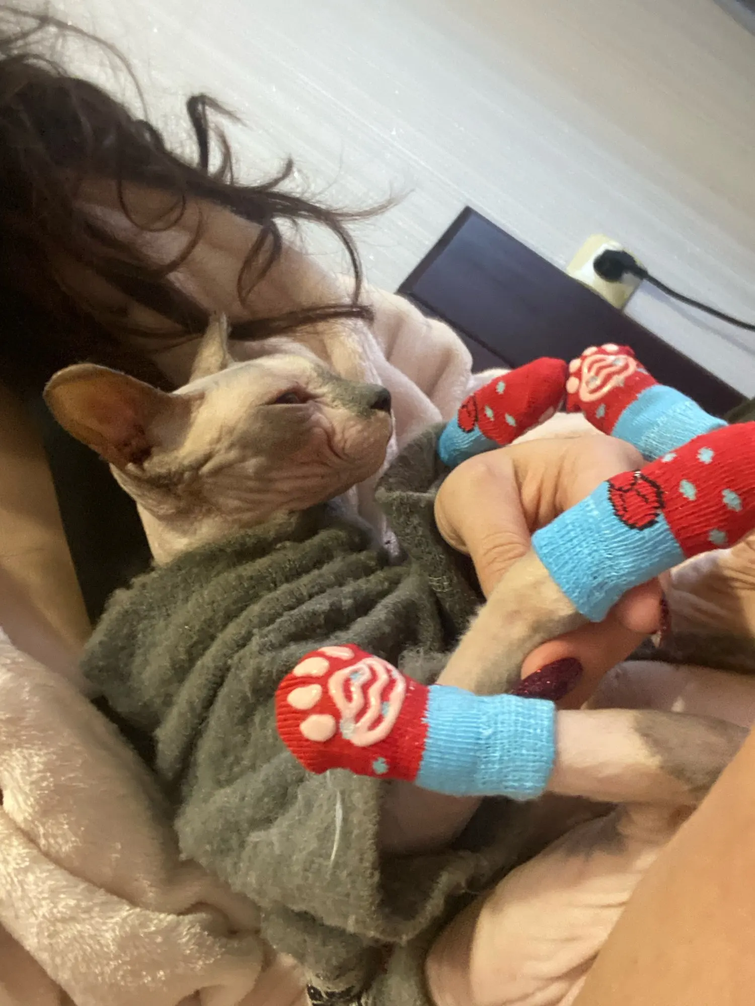 Кошачьи носки очень милые. Мне бы они слишком понравились, но она сняла их с этих ног.