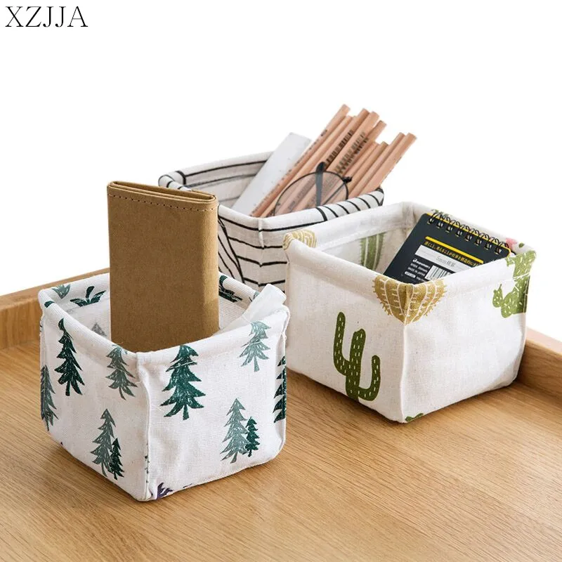 XZJJA хлопковые льняные Настольные Ящики для хранения канцелярские принадлежности разное офисный Органайзер милый квадратный косметический ювелирный дальномер маленькая коробка