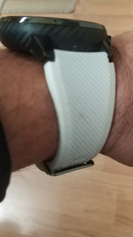 . Я получил другой цвет, чем заказанный, но в противном случае ремешок соответствует ожиданиям. Материал, силикон, прочный и не теряет цвет при использовании. Это не первый, который я покупаю, я меняю их цвет.
