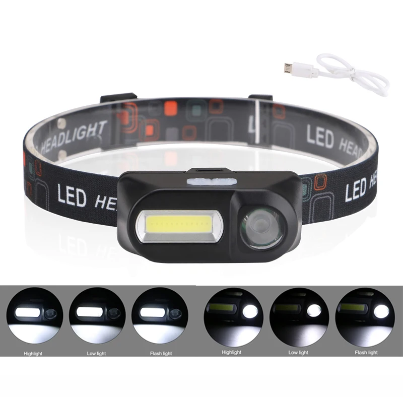 Портативный светодиодный налобный фонарь XPE + COB с USB-зарядкой, ...