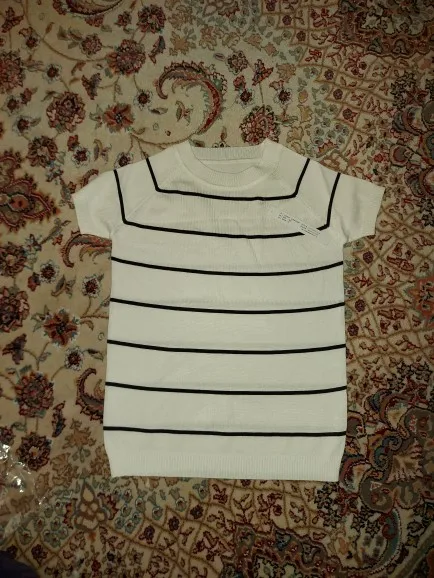 Классные трикотажные футболки. У меня уже есть такие полосатые. Удобные, мягкие. Мусор не липнет. Размер стандартный. Не линяют, цвет не поменялся. Думаю, у новых футболок так же будет.