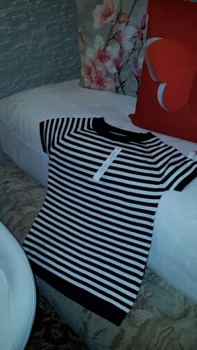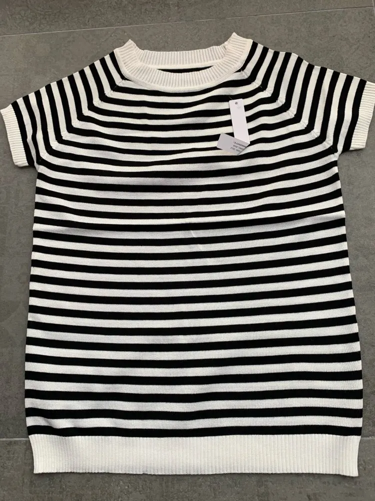 Женский трикотажный пуловер в полоску, белый и черный свитер с коротким рукавом и круглым вырезом, в Корейском стиле, лето 2022