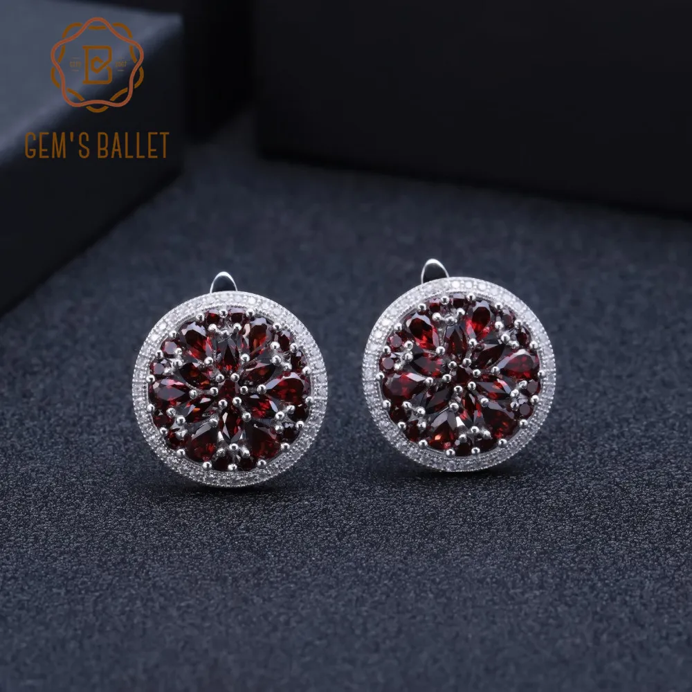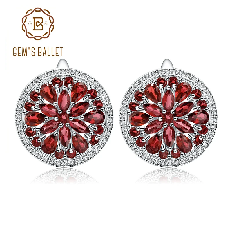 Женские серьги-гвоздики из серебра 925 пробы, с натуральным красным гранатом 7,76 карата