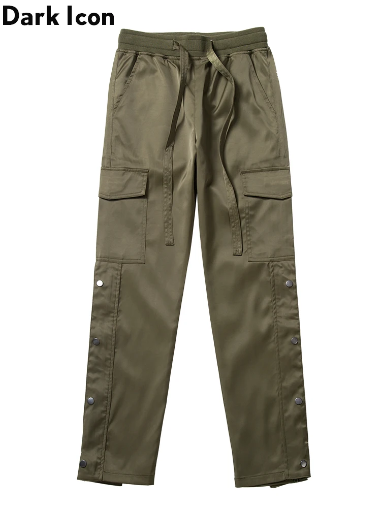 Мужские прямые брюки с боковой пуговицей Dark Icon, однотонные брюки с эластичной резинкой на талии, новинка 2019