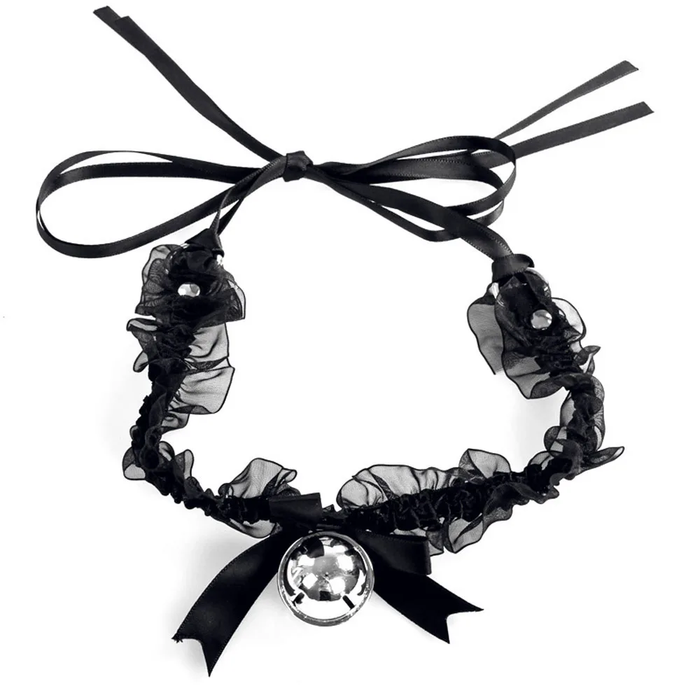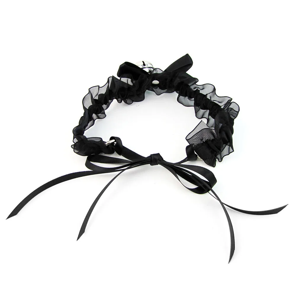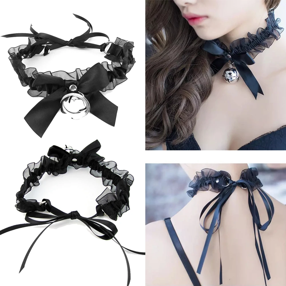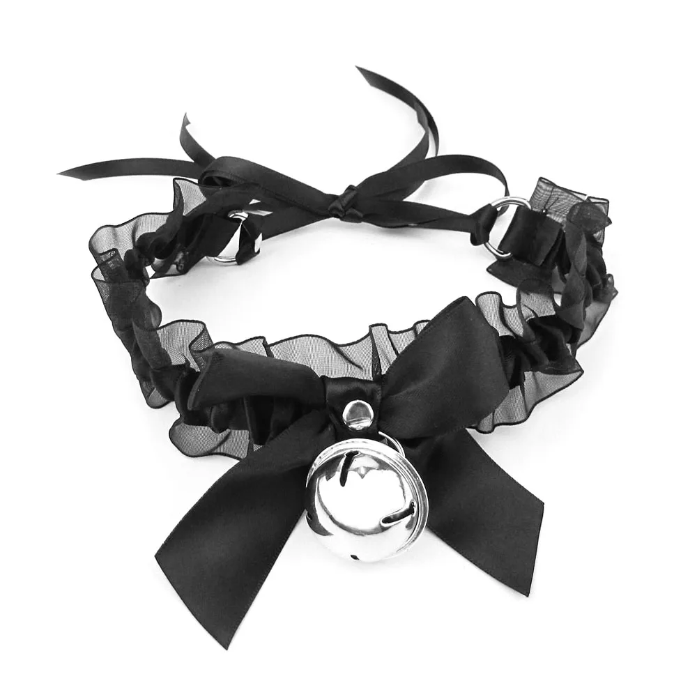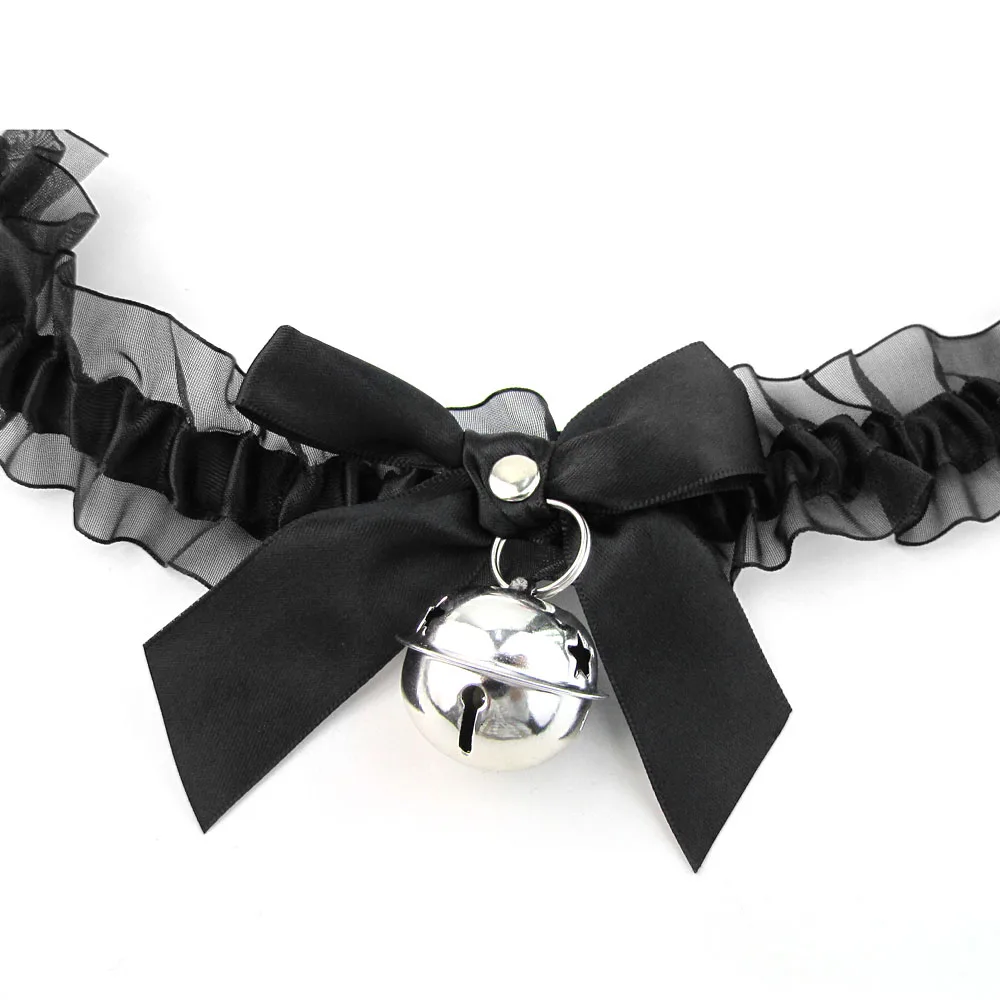 Женский кружевной ошейник-чокер с бантом и колокольчиком