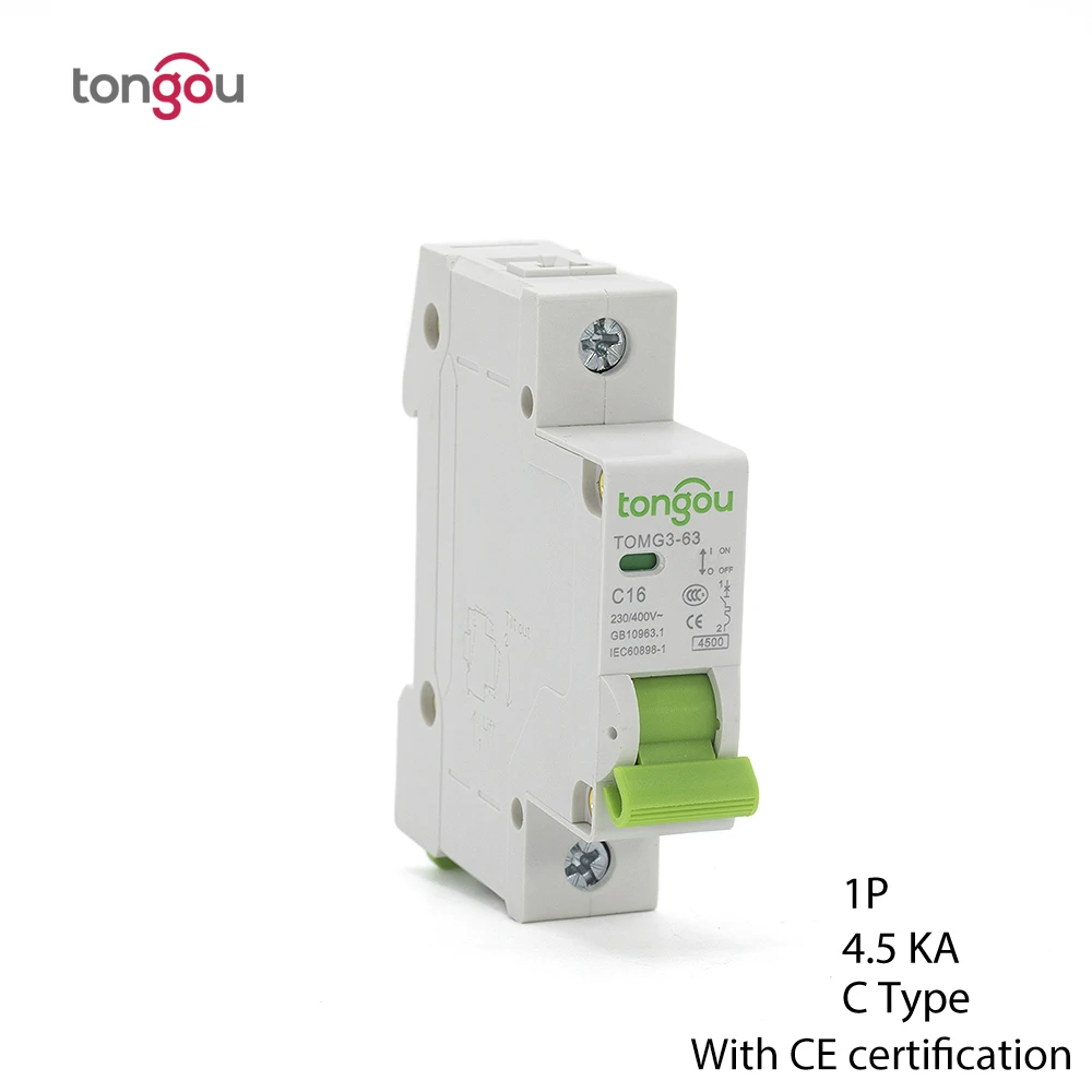 Миниатюрный автоматический выключатель 1A 6A 10A 16A 25A 32A 40A 63A MCB, переключатель типа C, 110 кА, 230 В400 В, С сертификатом CE, TOMG3-63