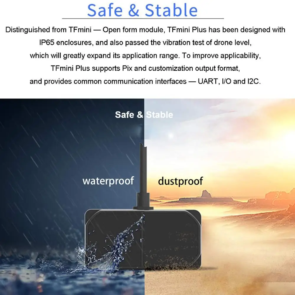 Лазерный лидар TFmini Plus, датчик дальности IP65, водонепроницаемый, пыленепроницаемый, TOF Lidar модуль, UART I2C IIC IO 0,1 m 12m