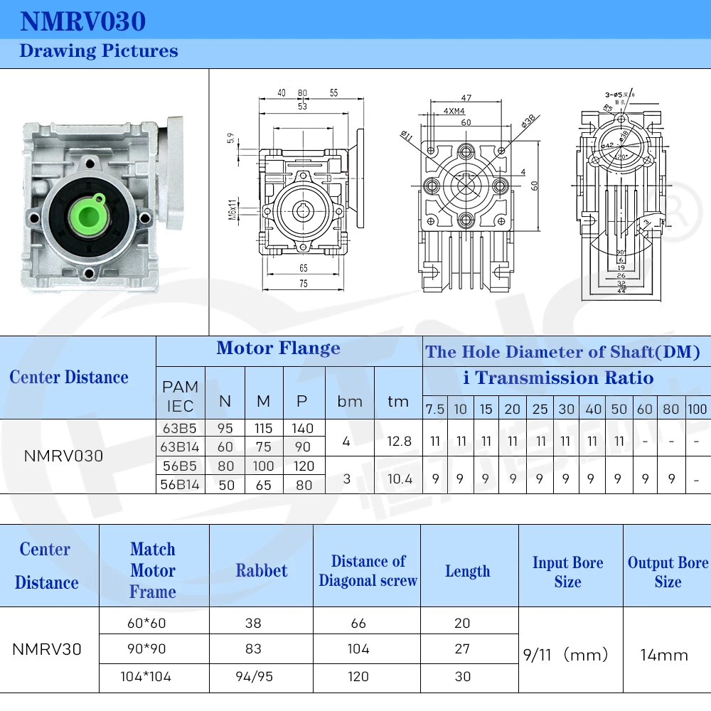 5:1-80:1 червячный редуктор NMRV030 11 мм Входной вал RV030 червячн...