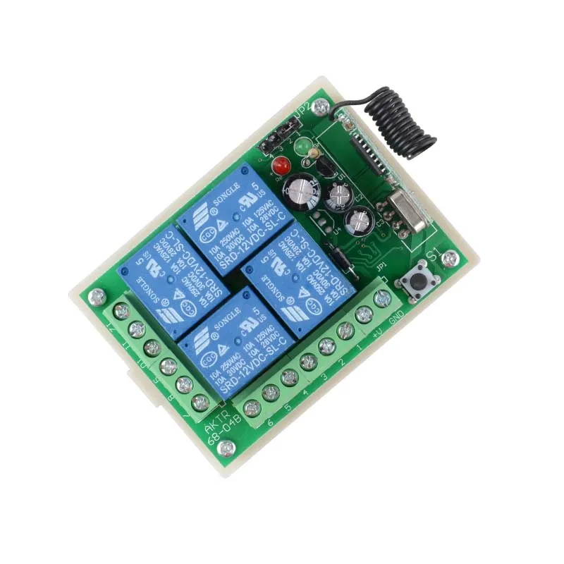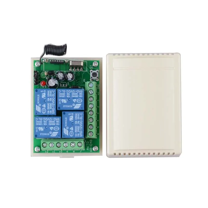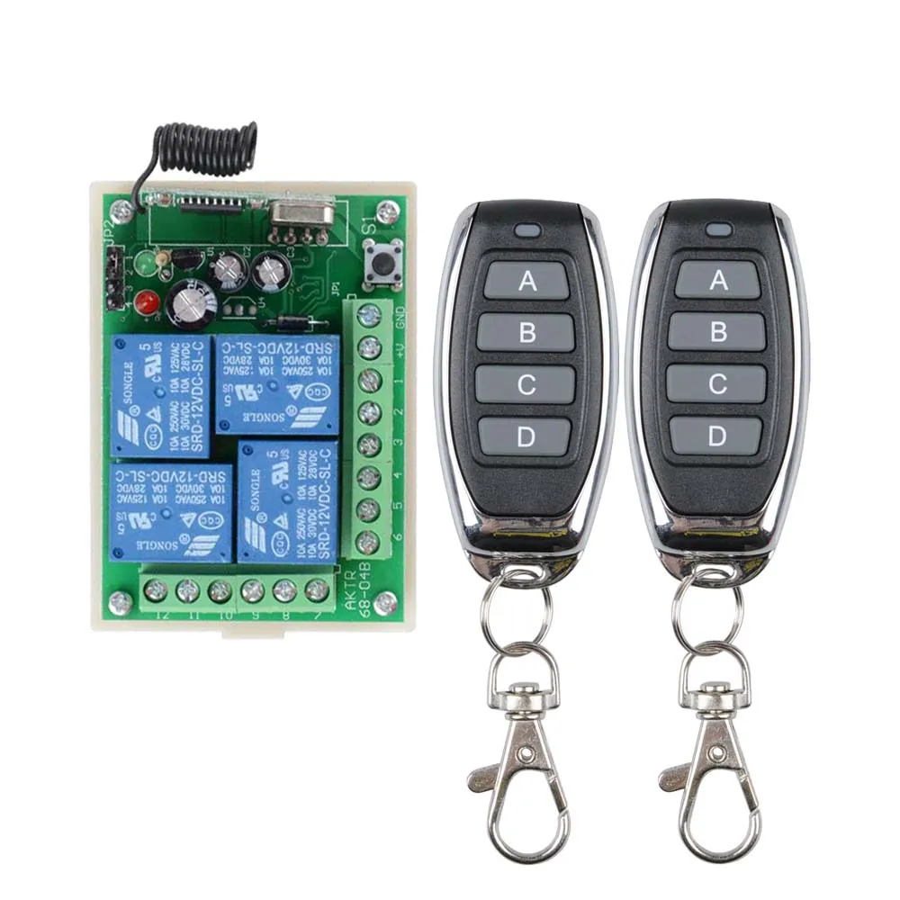 Смарт-многоканальное беспроводное реле, 12 В, 24 В постоянного тока, 10 А, 315433 МГц, 4 канала, 4 канала, Радиочастотный пульт дистанционного управления, переключатель, приемник + 4 кнопочный передатчик