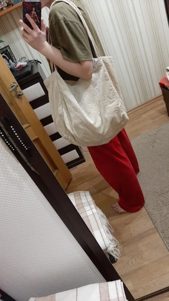 Сумка-тоут женская Вельветовая многоразовая, на тонком ремешке