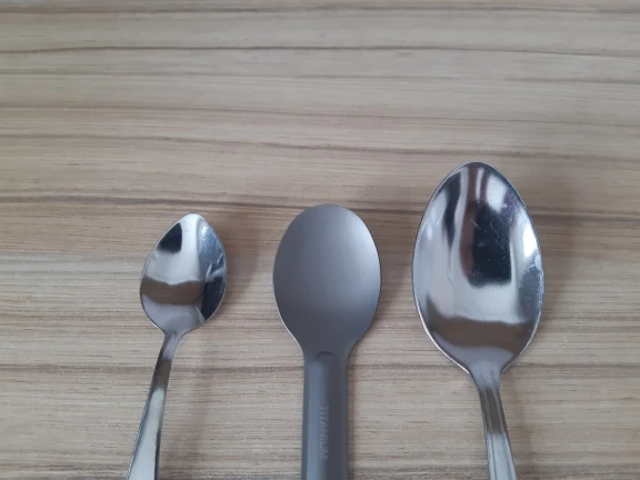 Соответствует описанию, быстрая доставка, упакована только в пакет. Размер ложки небольшой, где-то между чайной и столовой. В принципе с кашами, рогу не ощутил особого дискомфорта, а вот суп конечно придётся черпать дольше обычного. Зато габариты и вес отличные.