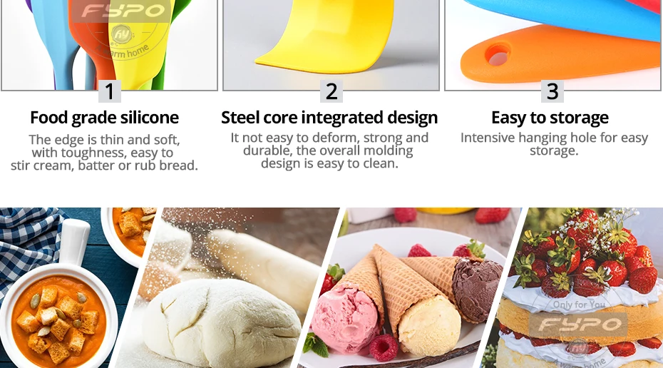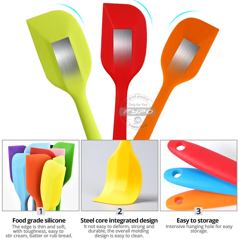 Силиконовые лопатки, многоцветный термостойкий резиновый шпатель, антипригарные смешивающие ложки с сердечником из нержавеющей стали, инструмент для выпечки