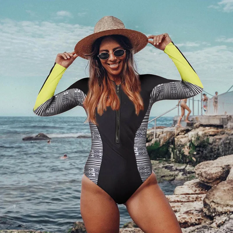 Слитный купальник, новинка 2021, сексуальный купальник с длинным рукавом, женский купальный костюм с принтом, пляжная одежда, купальники монокини с вырезом сзади
