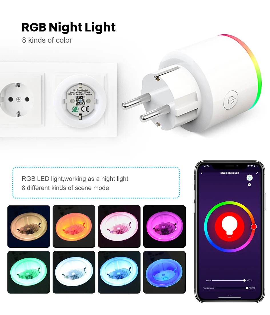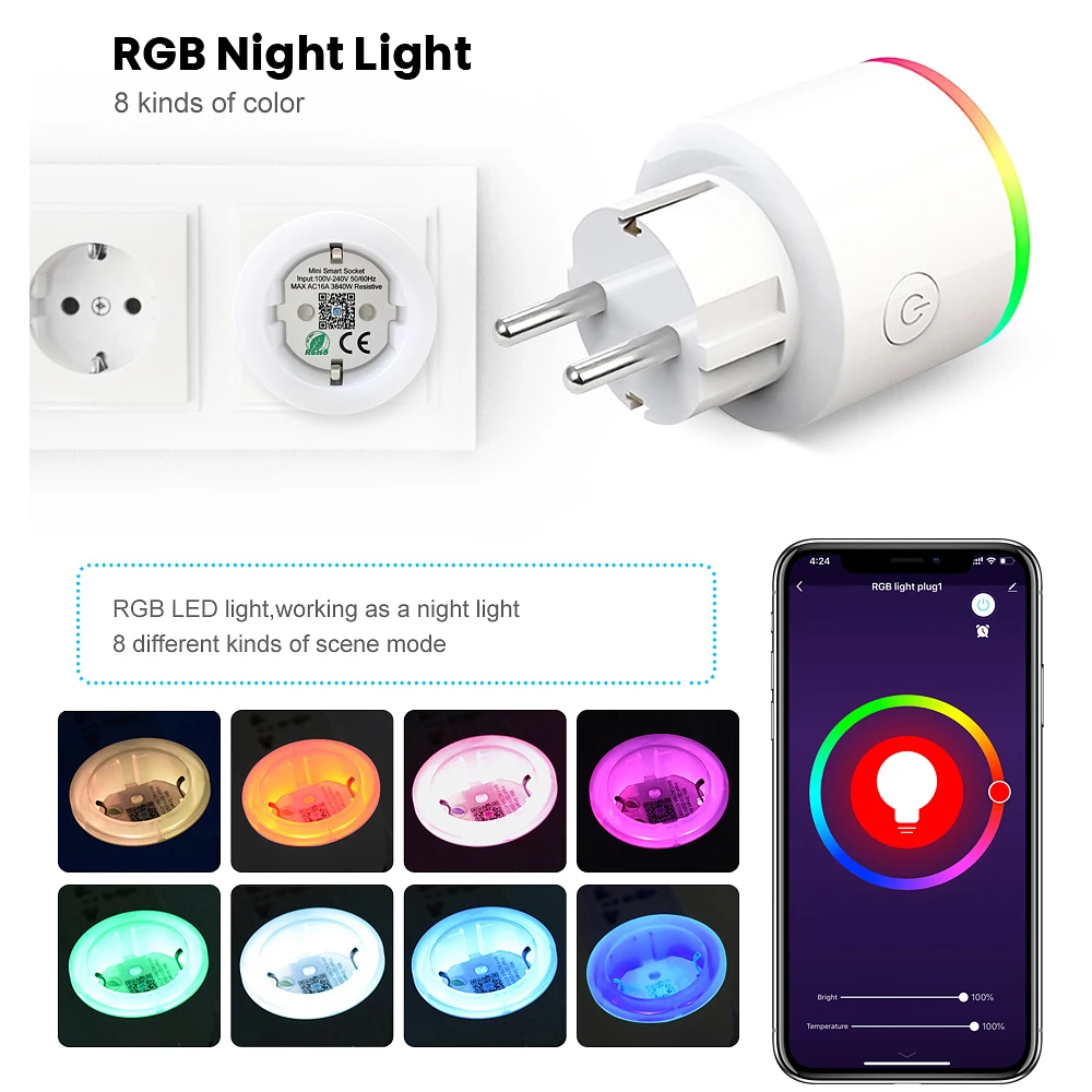 Розетка хорошая. пришло быстро. настроить подключение по WiFi не составило труда. подключал через Tuya Smart, подсказки помогают. Брал данную розетку для удалённого управления и мониторинга потребления электропитания. подключал 1000Вт обогреватель - проблем нет (конечно, ведь заявлено до 16А нагрузка) как источник света - ненавязчиво. свет на максимальной яркости не раздражает в темноте. товаром доволен.