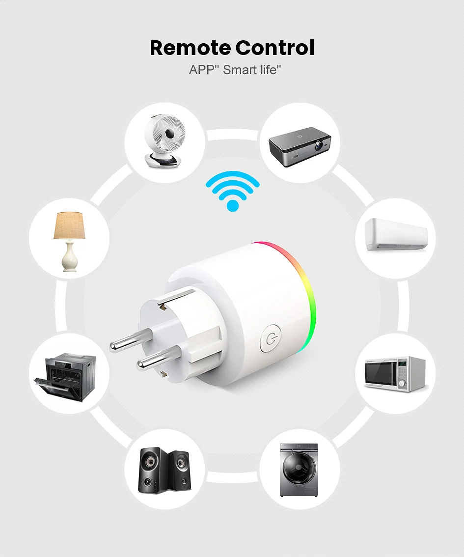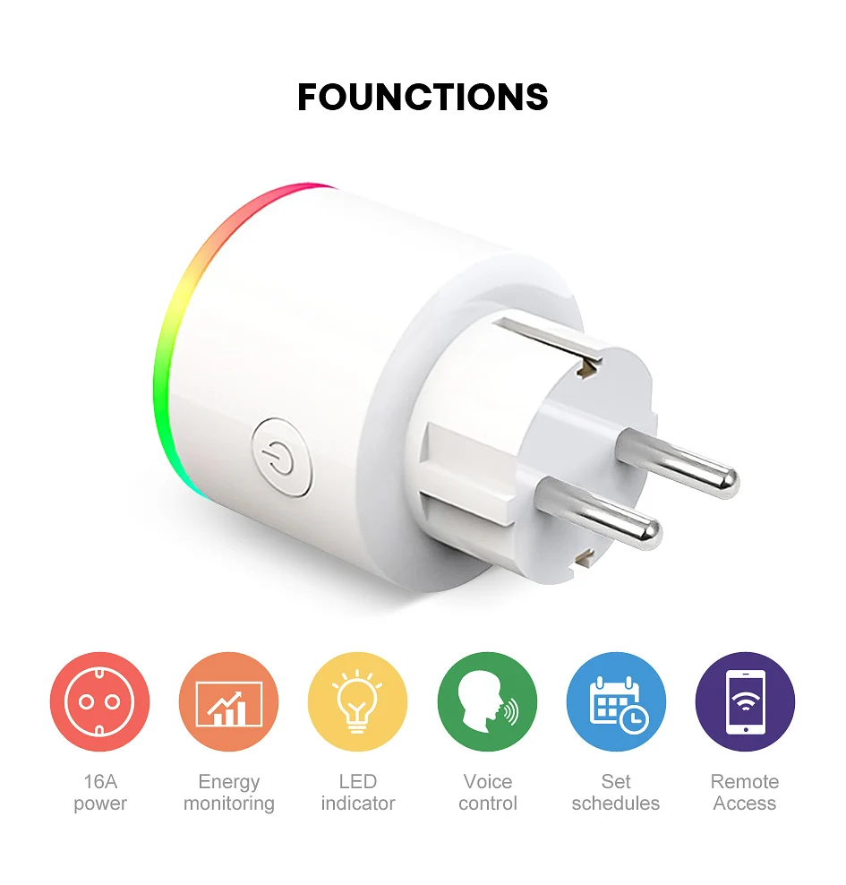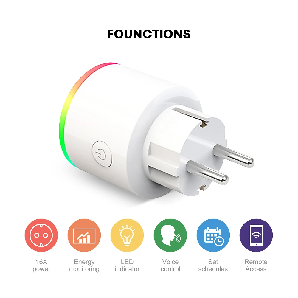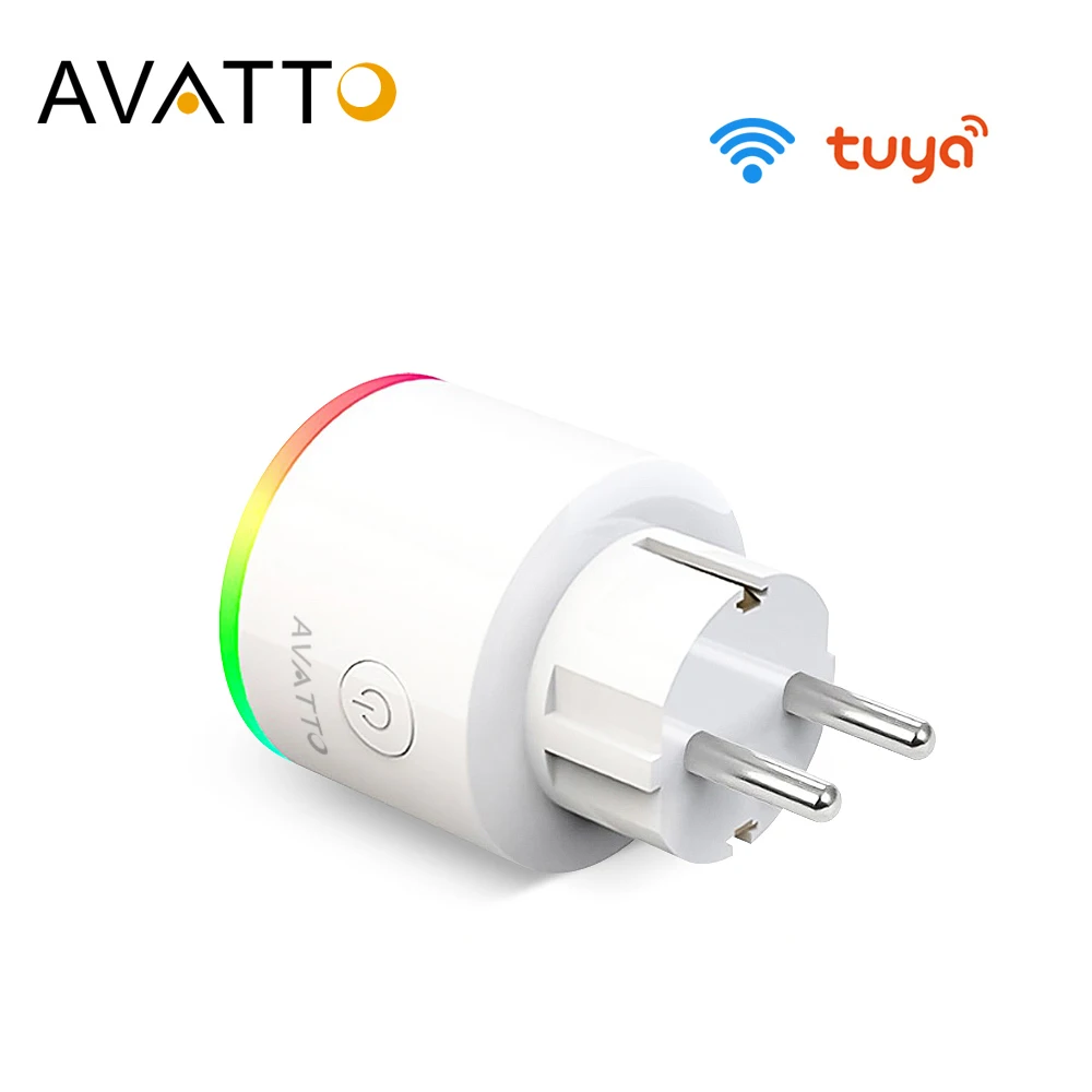 Умная розетка AVATTO, беспроводная вилка 16 А, разъем EU, подсветка RGB, счетчик потребляемой мощности, Wi-Fi, Google Home, голосовое управление Alexa