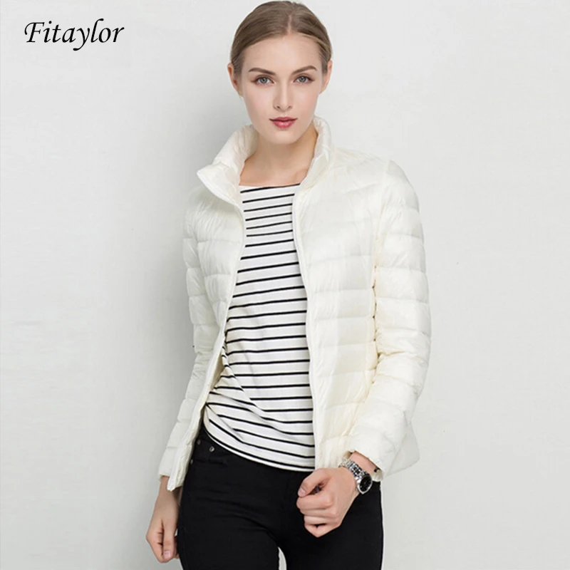 Fitaylor Женская куртка на белом утином пуху, ультра-светильник 90%, на весну и зиму, короткая куртка-пуховик, ветрозащитная куртка