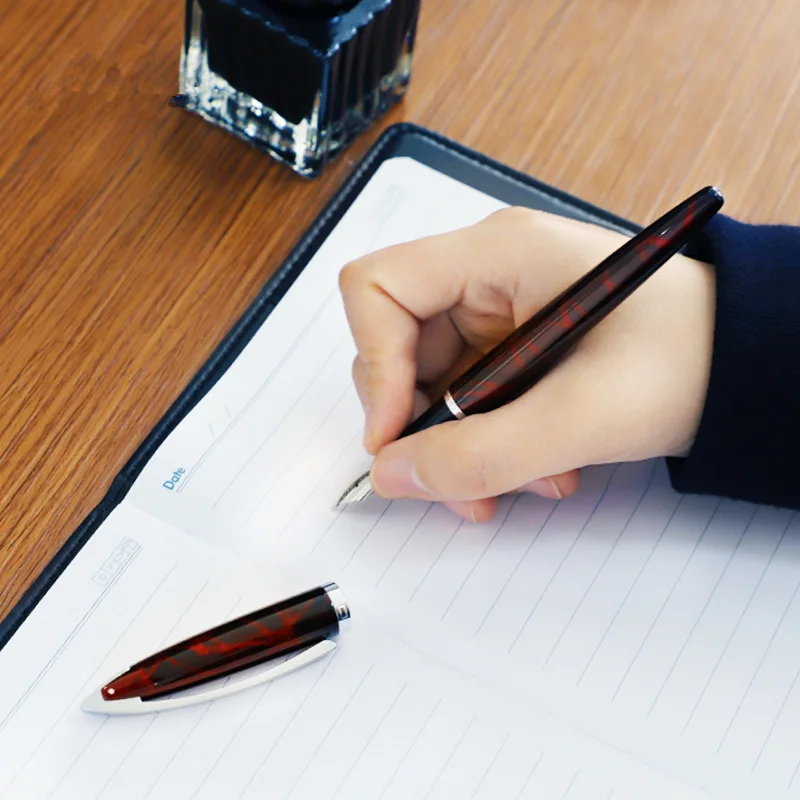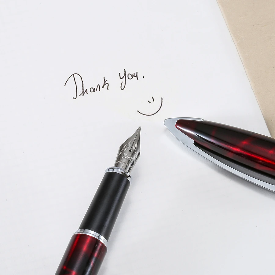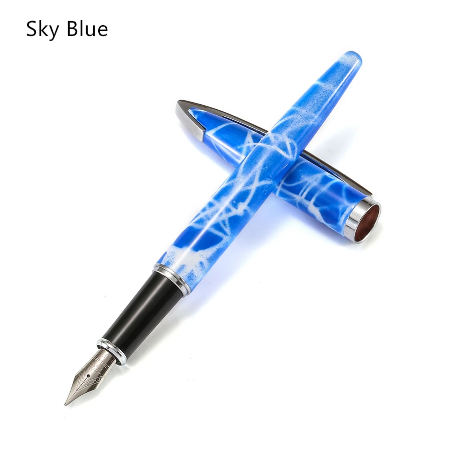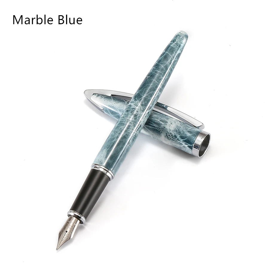 Ручка перьевая Jinhao с серебряной дугой, с тонким пером, элегантная, с желтым мрамором, для школьников, каллиграфия A6206