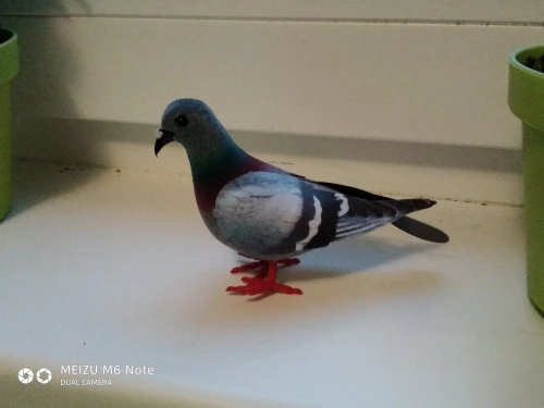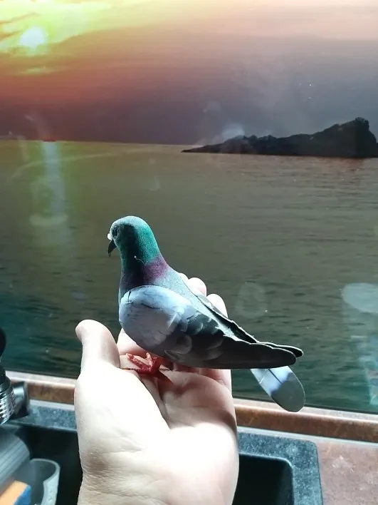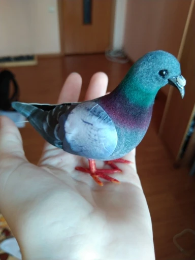 Очень маленький голубь. Хоть и как настоящий. Но маленький. Спасибо что целый пришёл!