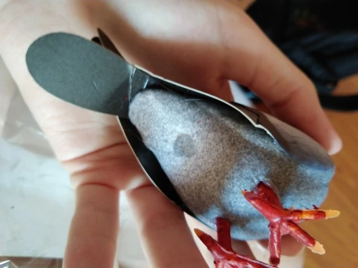 Он очень маленький! Размером с воробья. Крылья и хвост из бумаги немного помяты.