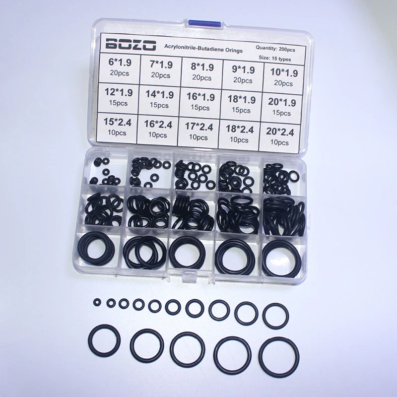 Уплотнительные кольца черные, 15 Размеров, 200 шт., NBR резиновое уплотнение