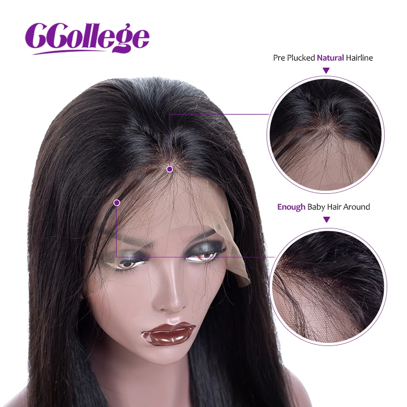 Парики из прямых бразильских натуральных волос CCollege, черные женские волосы, предварительно выщипанные из детских волос