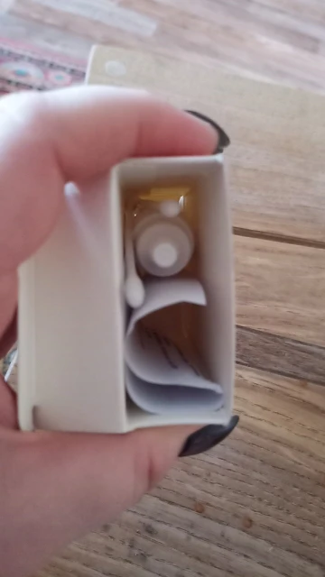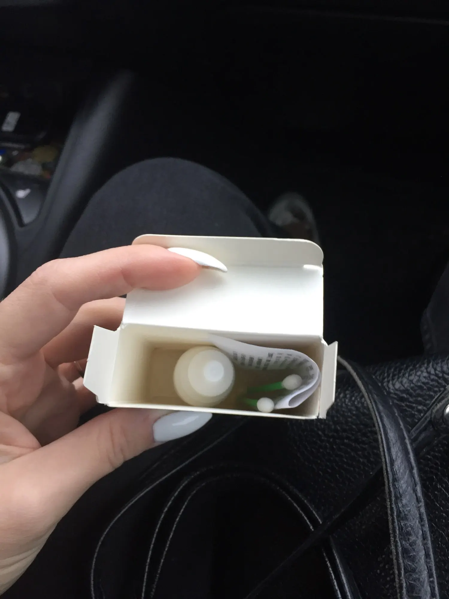 Еще не пользовался. В коробочке маленький флакон, 2 ватные палочки и инструкция на китайском.