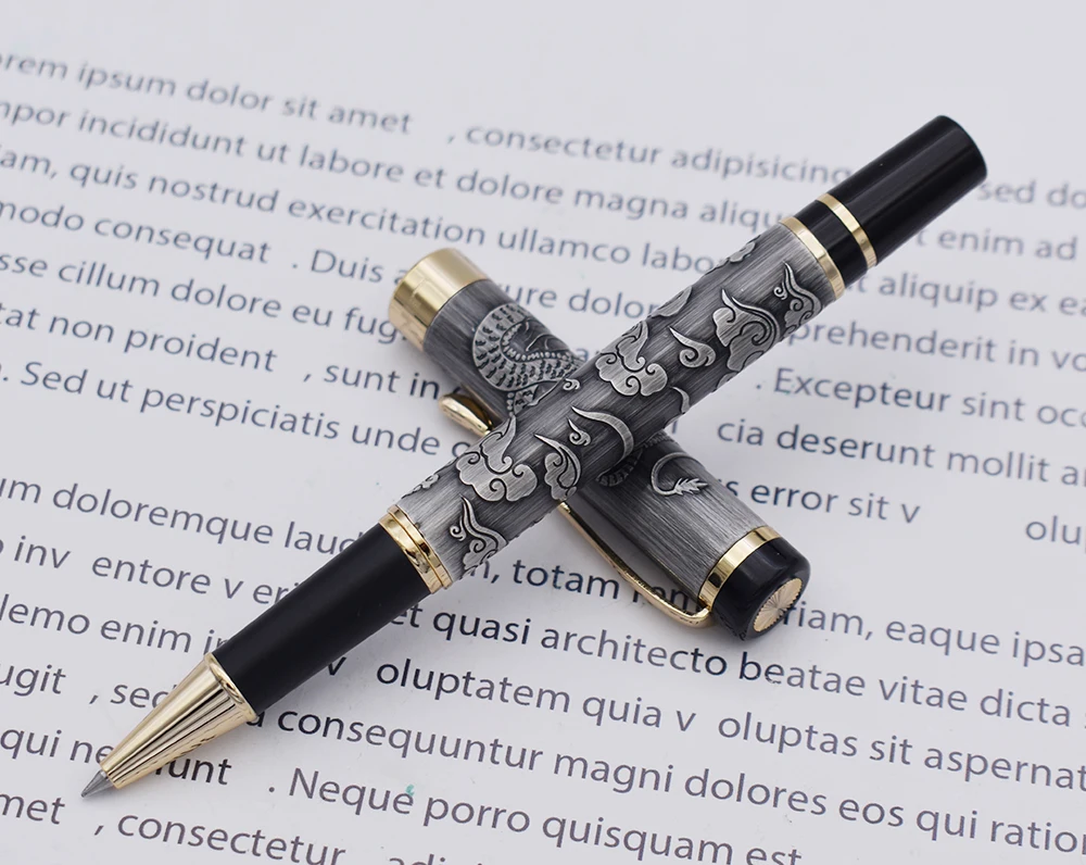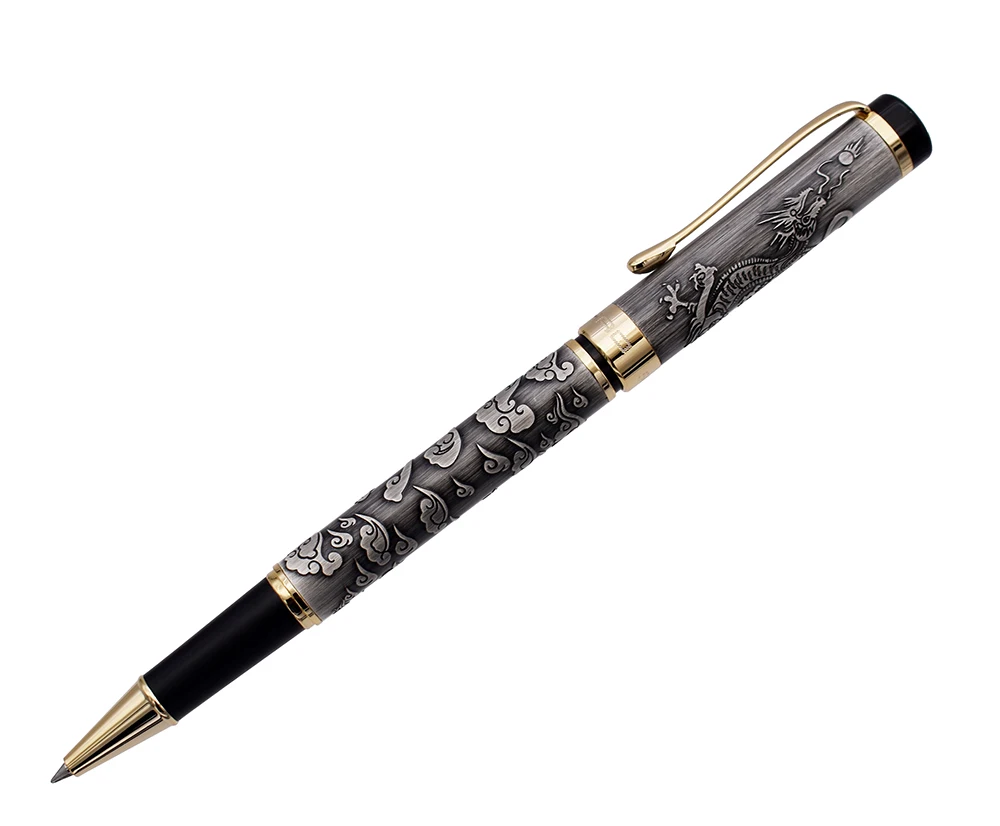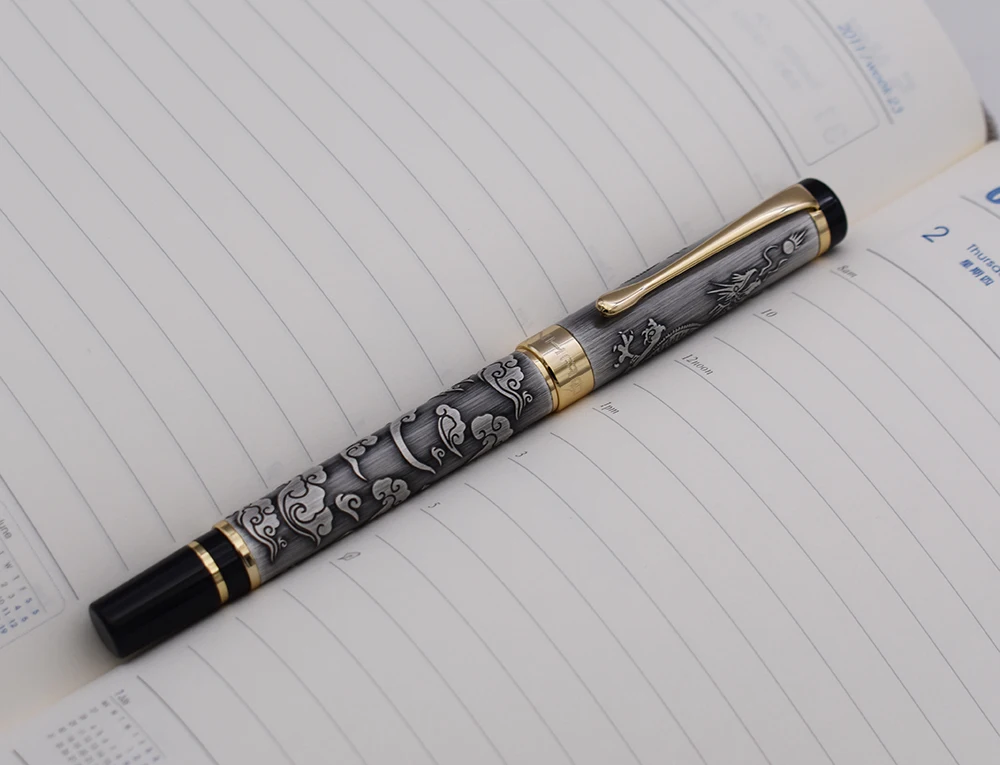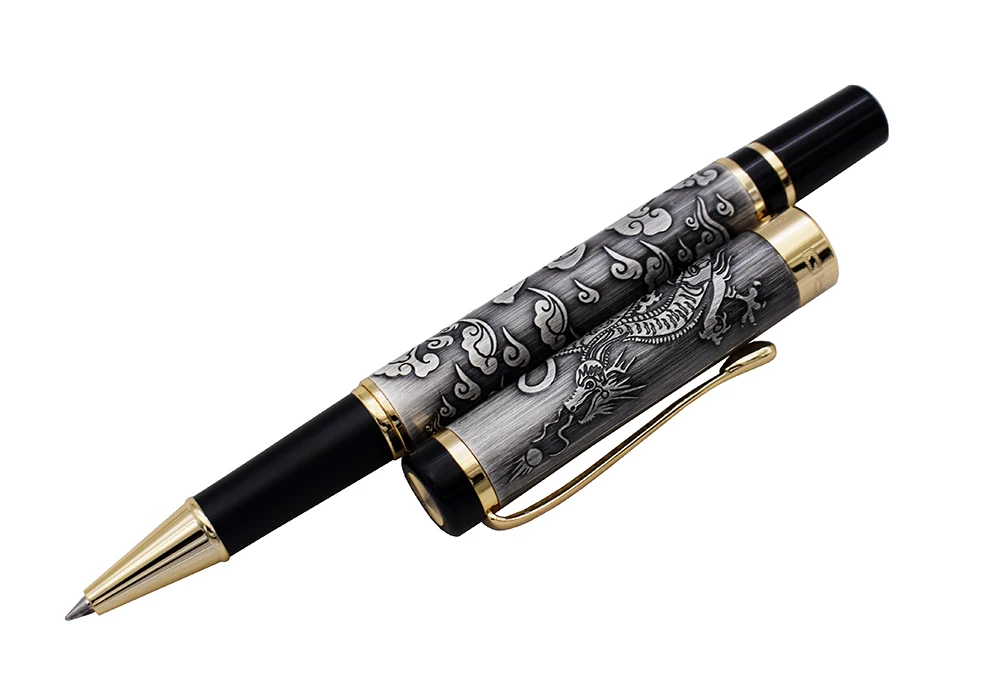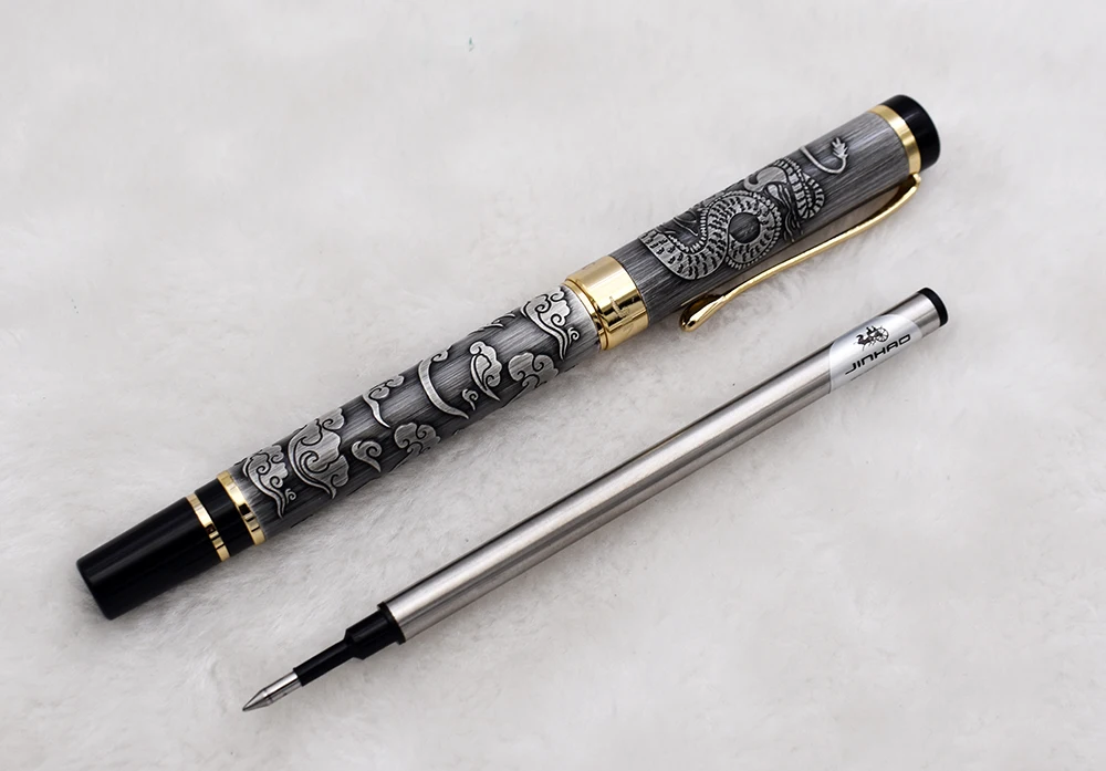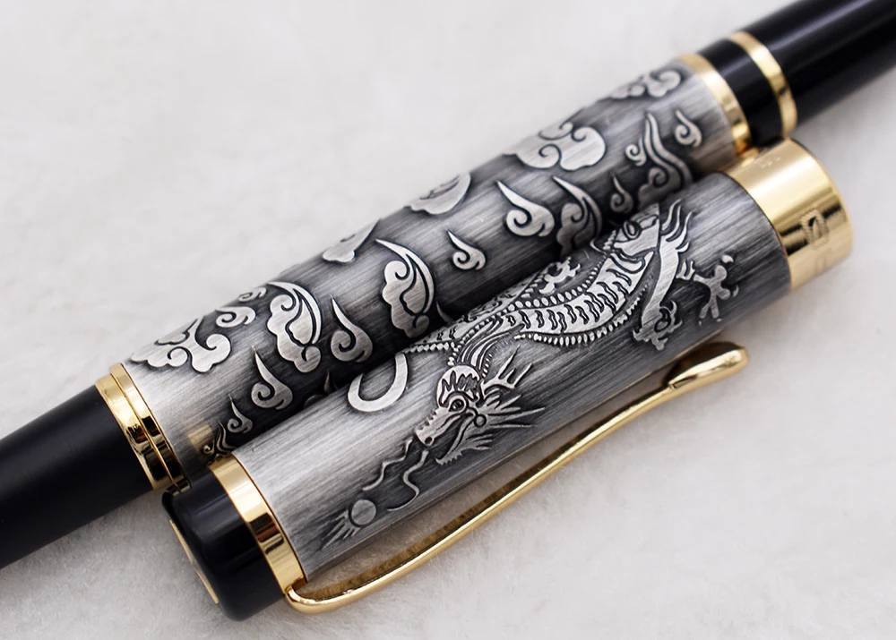 Jinhao 5000 винтажная Роскошная металлическая шариковая ручка с красивой текстурой дракона, серая чернильная ручка для офисного бизнеса: