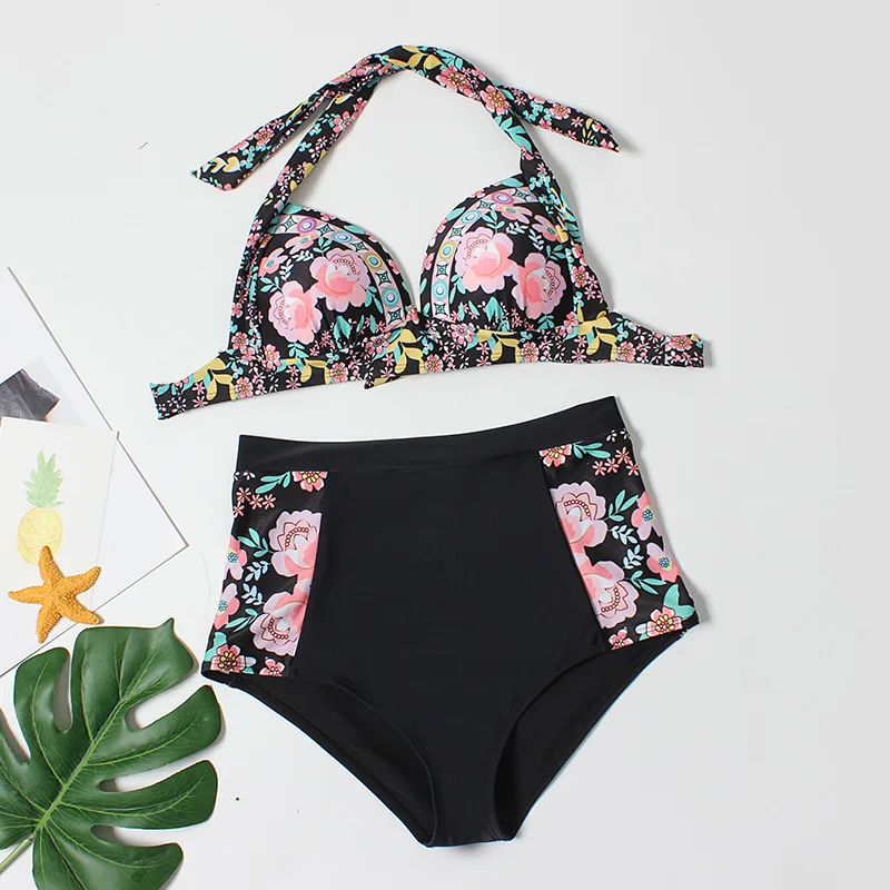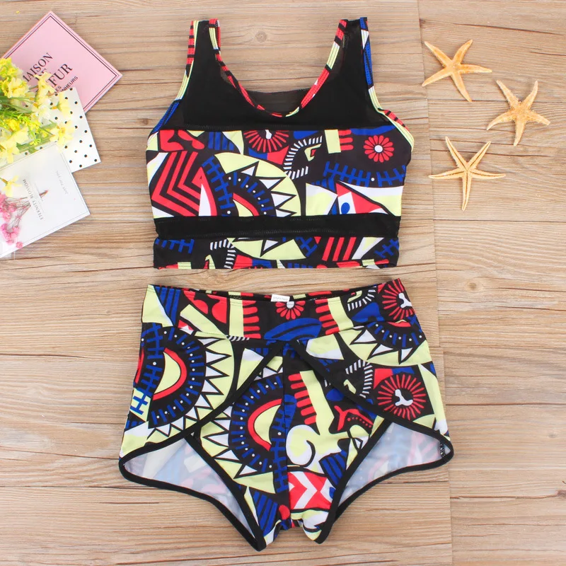 Женское бикини с высокой талией, Сетчатое бикини 3XL, купальный костюм с Африканским принтом, купальник из двух предметов, 2019
