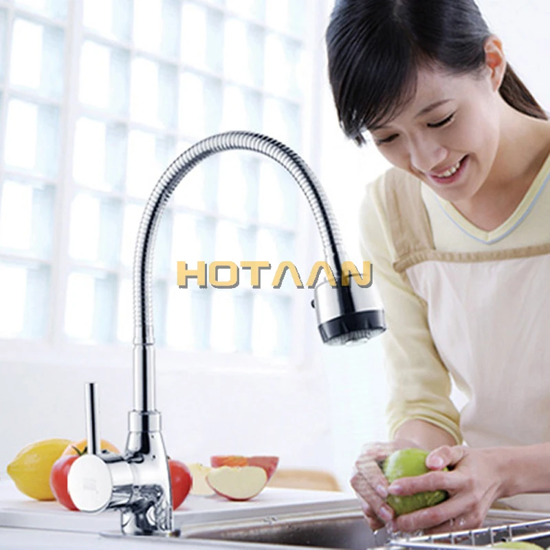 A. Кухонный кран. Твердый латунный уплотненный хромированный пружинный кухонный смеситель. Кухонный кран.