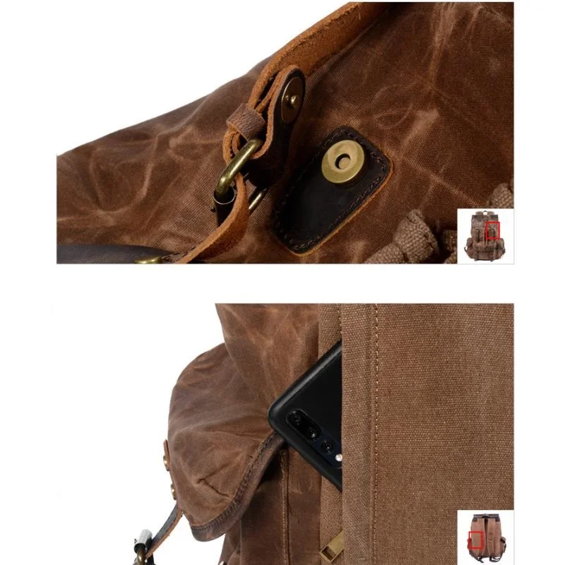 Водонепроницаемый рюкзак из вощеной ткани и натуральной кожи для му...