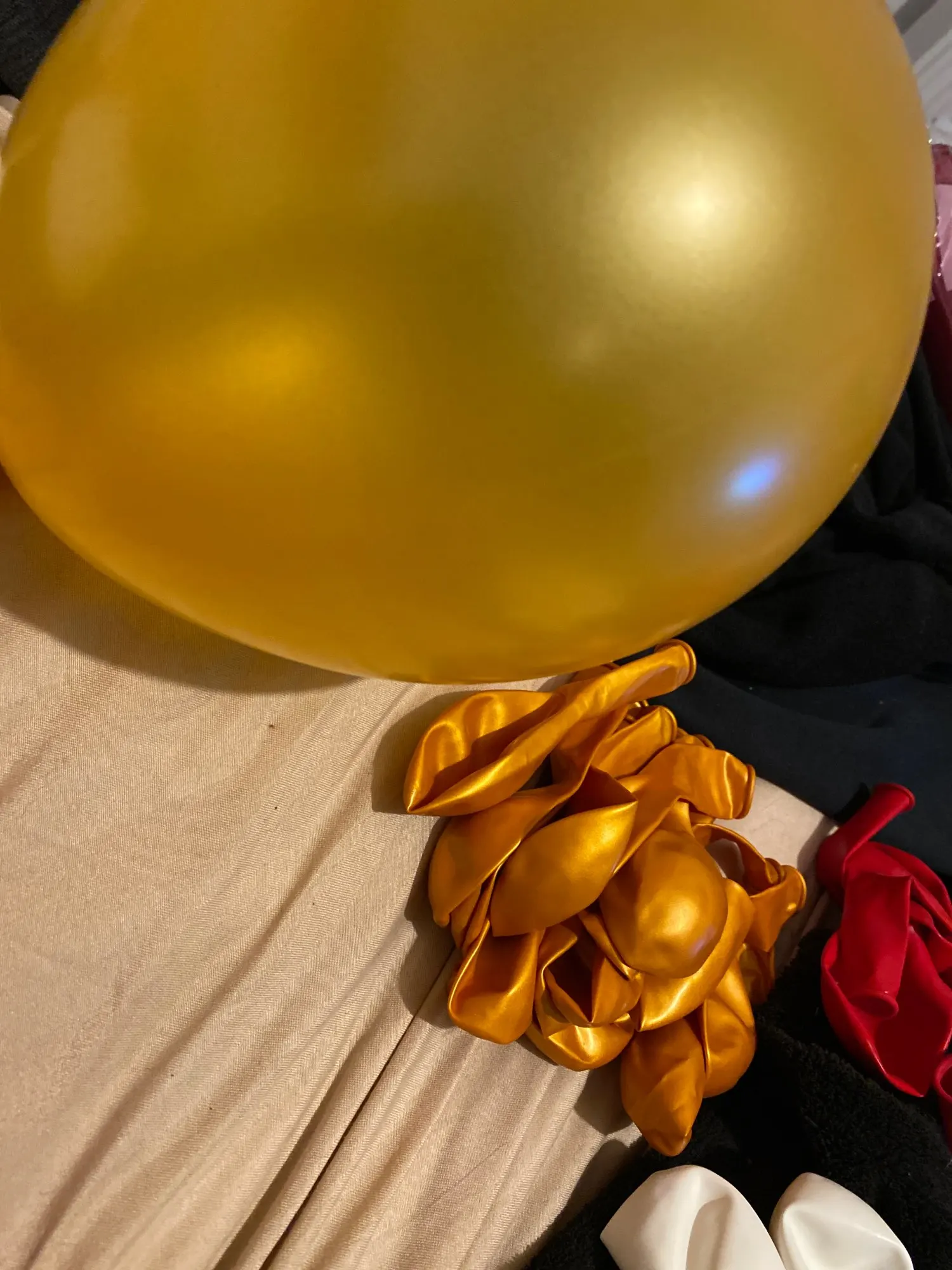 Золотые воздушные шары, которые я не с эффектом, который вы видите на фото, так как они прибыли, они выглядят желтыми.