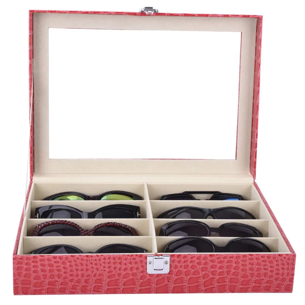 Кожаный чехол-органайзер SZanbana для хранения очков и солнцезащитных очков, 8 шт. (розовый и черный)